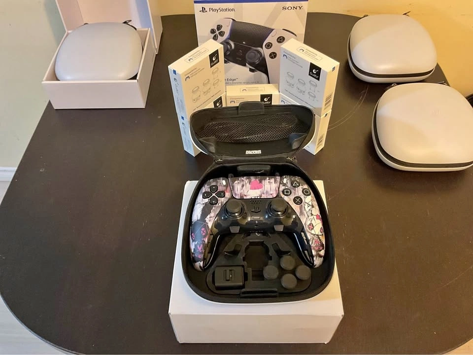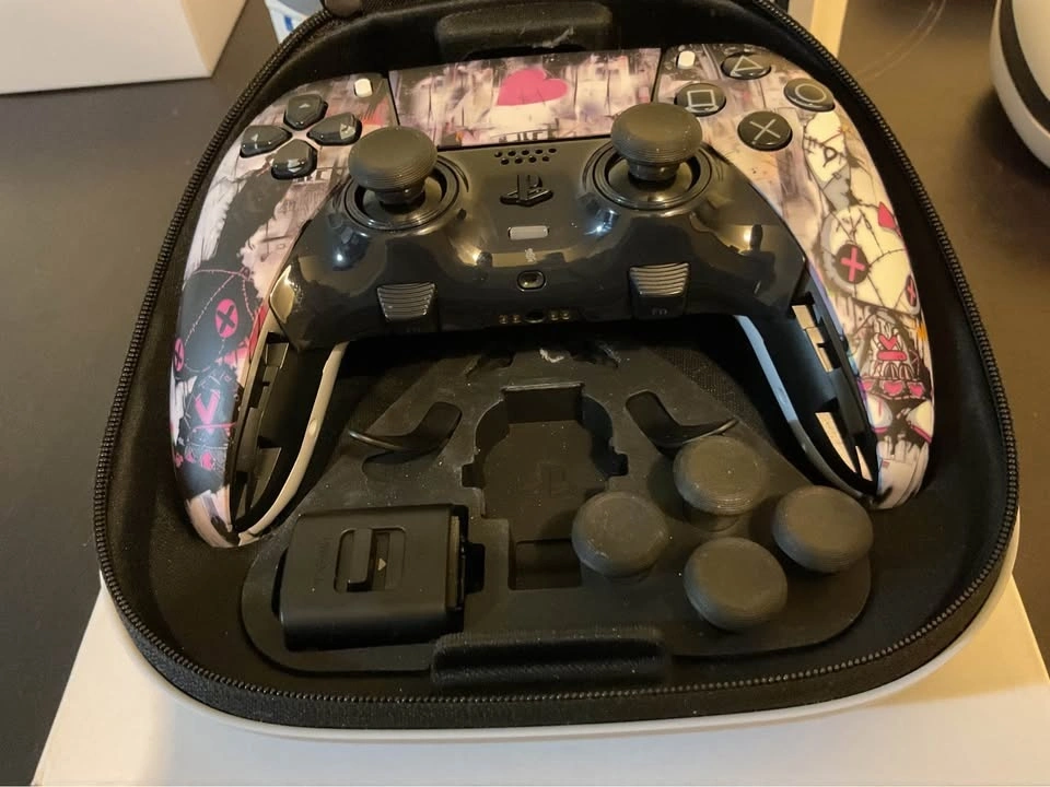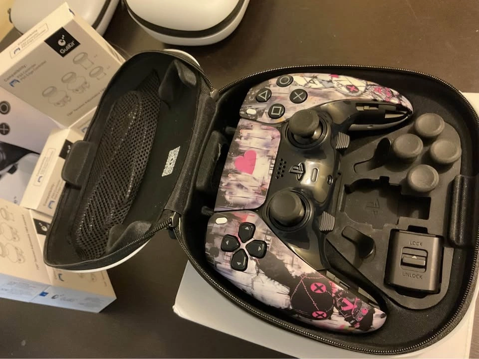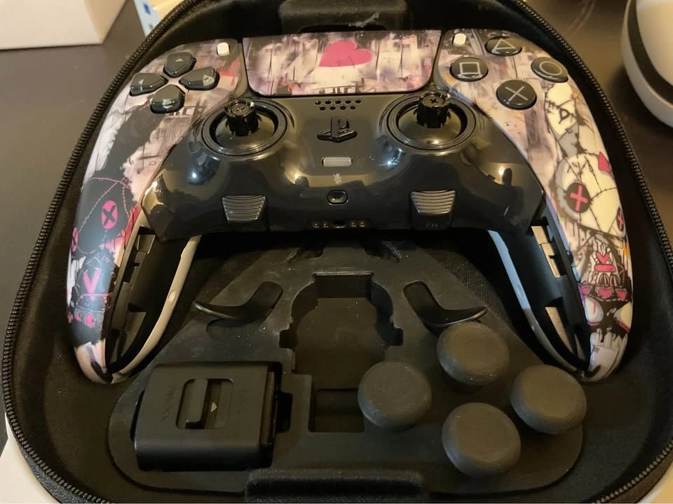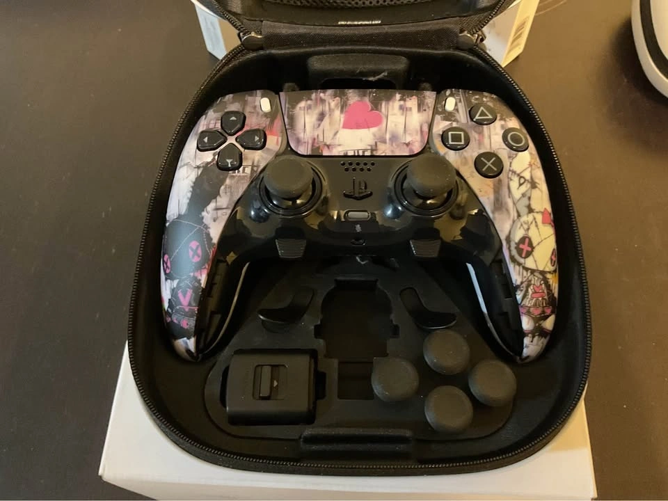 This is a custom Pink Punk Bunny DualSense Edge wireless controller for PlayStation 5, PC, Mac, and mobile devices. It includes the controller, a carrying case, box, and all original accessories. It also features upgraded Gulikit NS55 720-degree TMR joysticks to prevent stick drift. The controller is in excellent, like-new condition with no sticky buttons or discolored grips. You can customize button mapping, stick sensitivity, trigger depth, and create personalized control profiles. It comes with changeable stick caps (standard, high dome, low dome), back buttons (half dome, lever), a USB-C cable, and connector housing. Test the controller before you buy. Please see photos and ask any questions you may have before purchase. All sales are final, but I offer a 2-month replacement for non-physical/cosmetic issues. Let me know if you're interested!