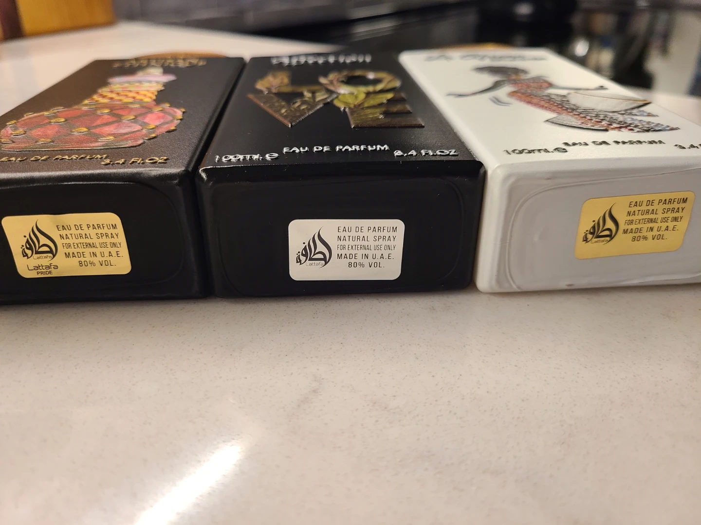 Three Lattafa Eau de Parfum bottles. 100ML each bottle.
