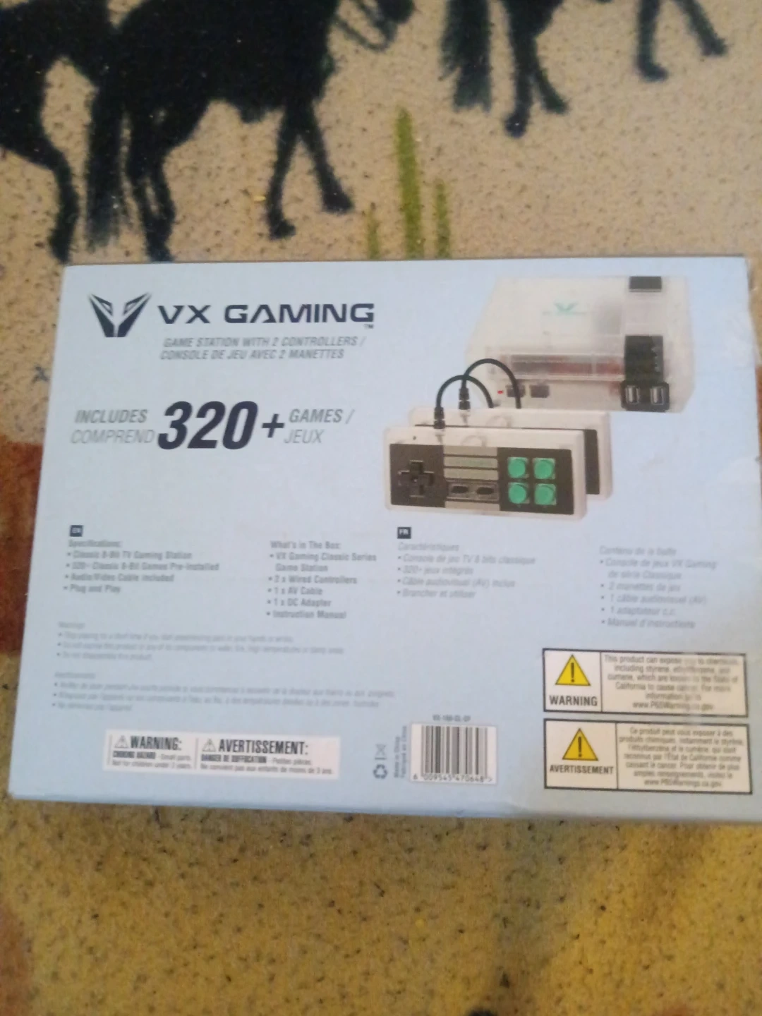 This VX Gaming Game Station comes with 2 controllers and includes over 320 games. It connects via AV cables and a power adapter is included. It's great for retro gaming fun!