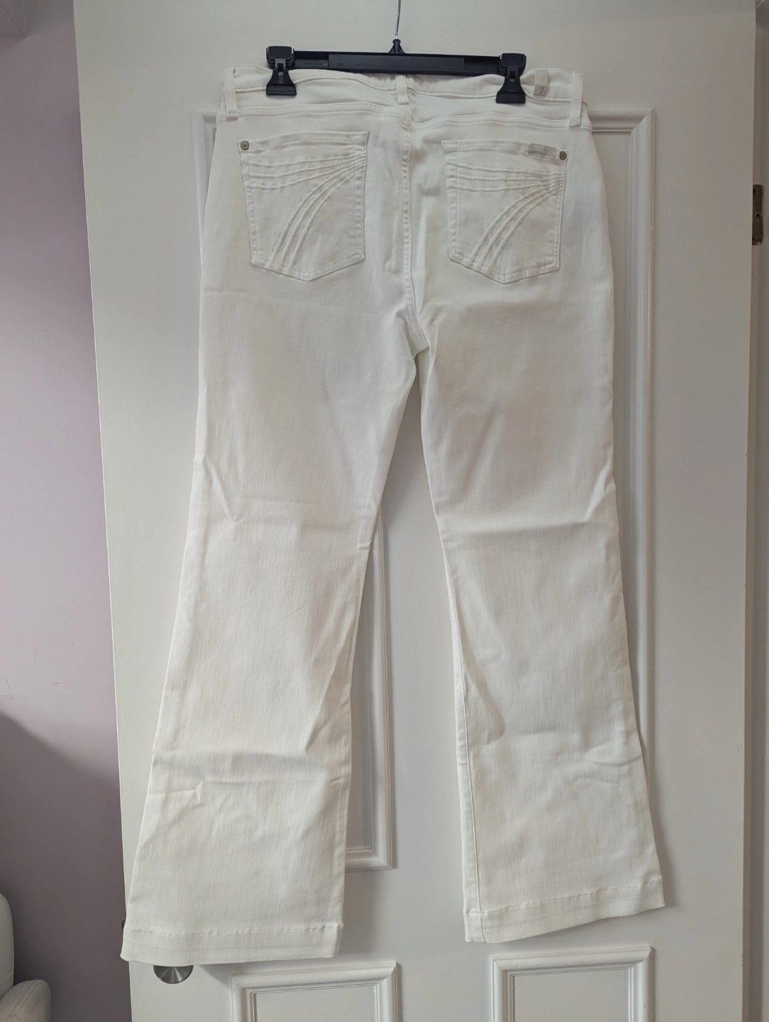 White wide-leg jeans. Slim fit through the hip and thigh. Tailorless design. Excellent condition.