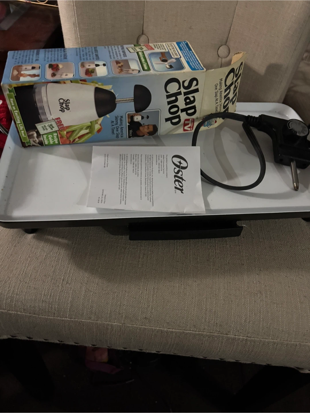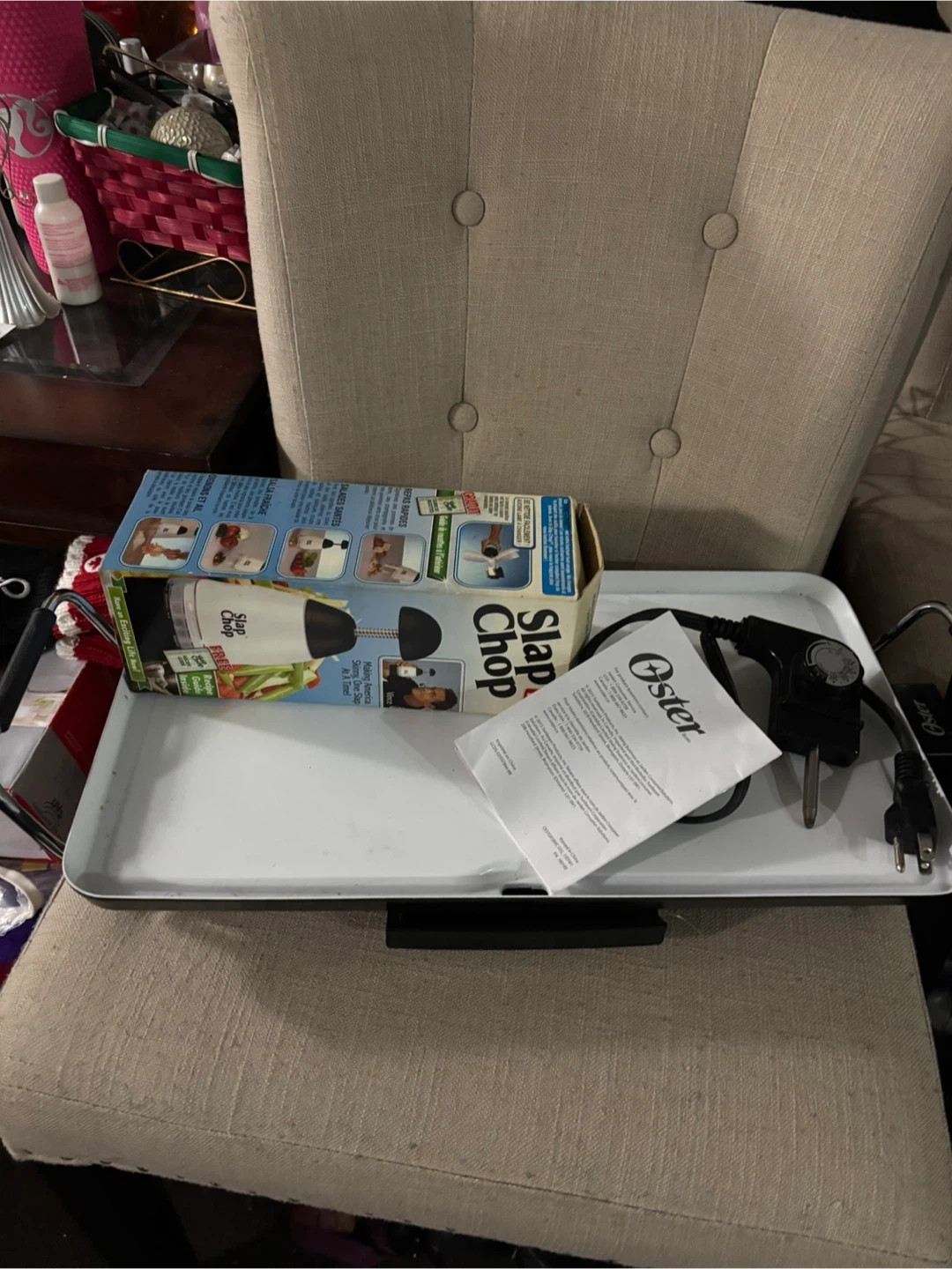 Buy & SellSlap Chop and Electric GriddleSlap Chop and Electric Griddle$30This Oster electric griddle is a handy kitchen appliance. It comes with a temperature control and instructions. The Slap Chop is also included.ConditionNewBrandOsterWHERE TO MEETAirport Road & Sandalwood Parkway EastView MapSELLERverifiedAnnSandringham Wellington1667 reviews0 chats·0 favorites·1 viewsSEND CHAT TO SELLERHi Ann! I’m interested in your listing.Hi Ann! I’m interested in your listing.Get the Karrot app to chatSign In to chat