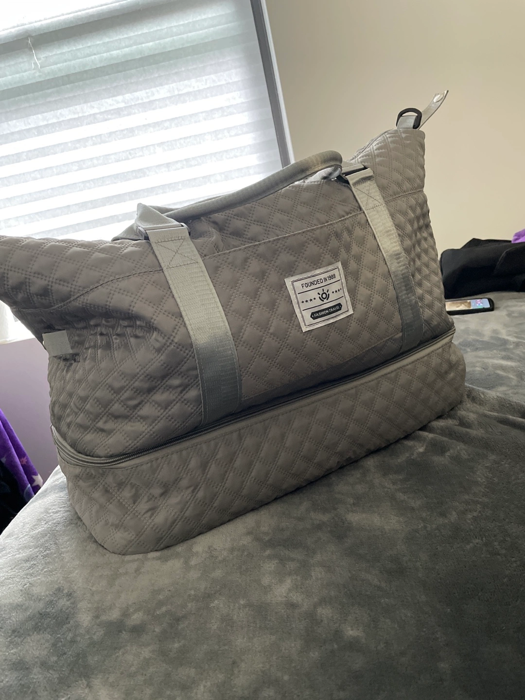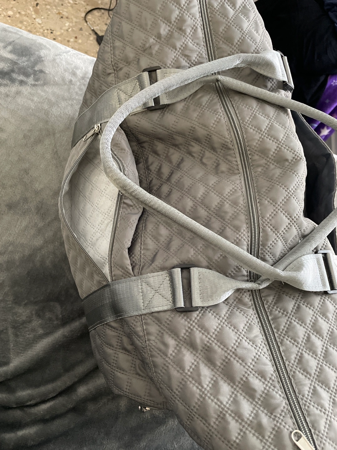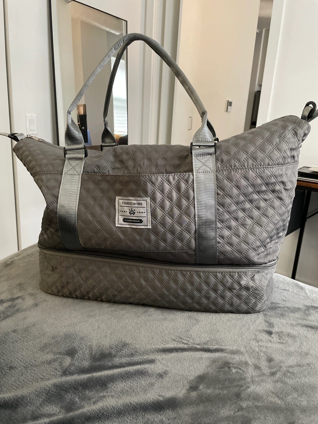 This is a Dark Grey Weekender Bag with two zipper pockets.