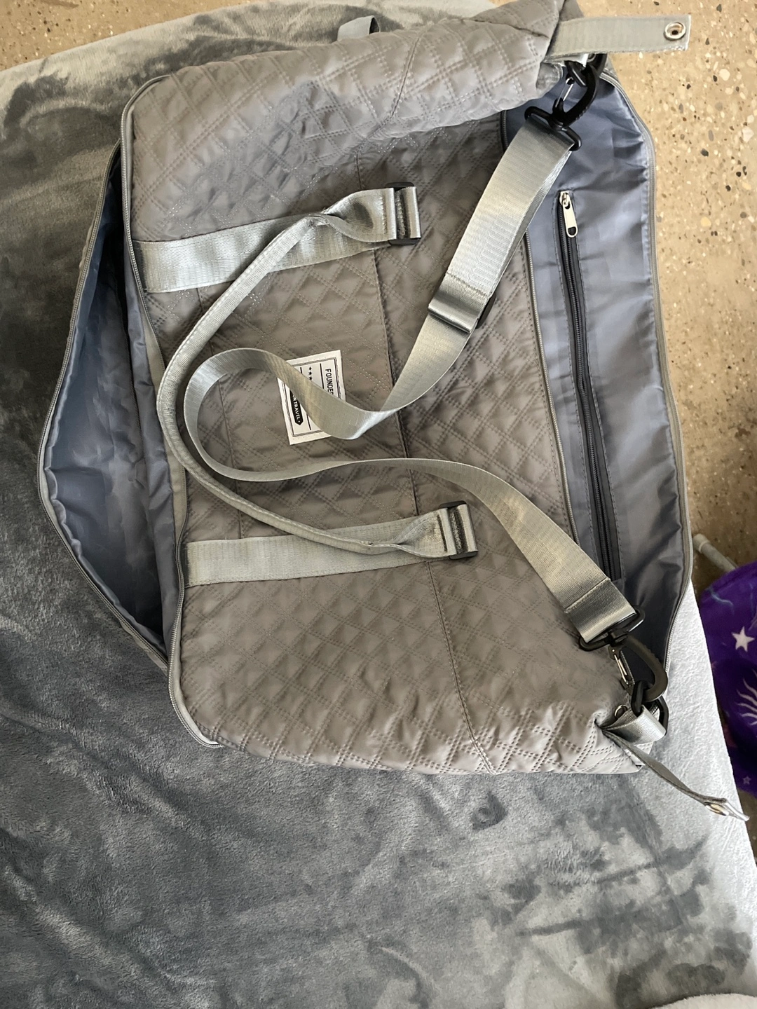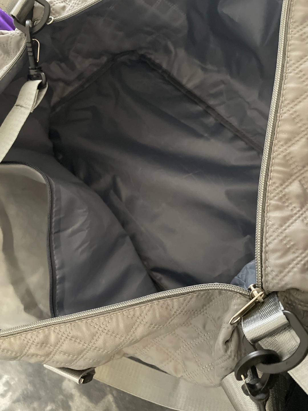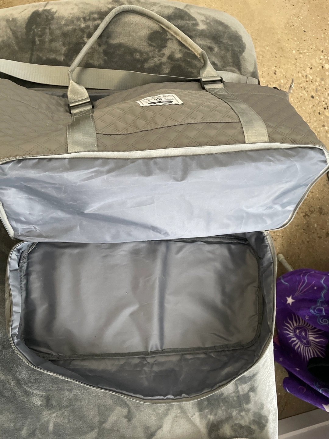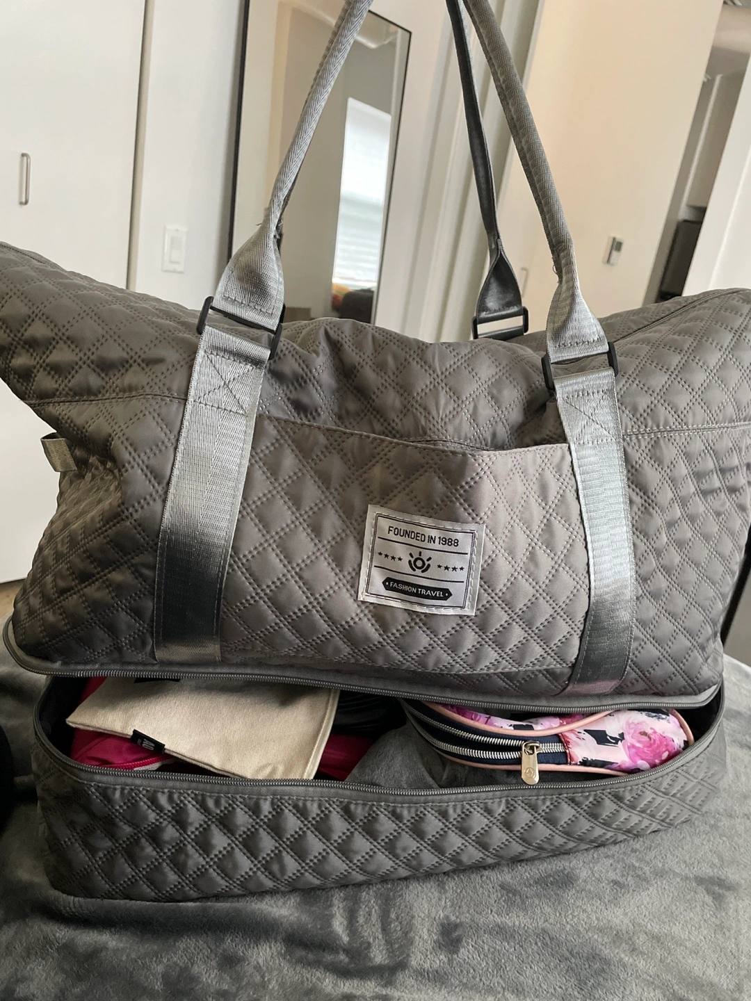 This is a Dark Grey Weekender Bag with two zipper pockets.