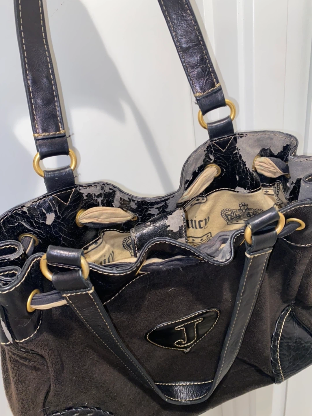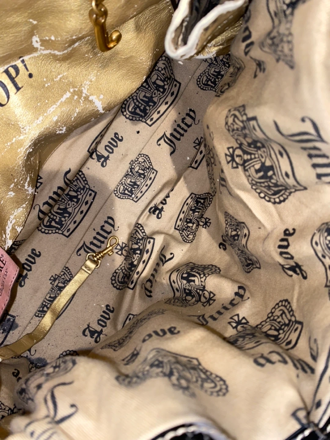 Please note that there are flaws such as peeling on the interior pockets + inside leather trim which unfortunately happens with age for the vintage Juicy Couture bags 🥹🙏🏼