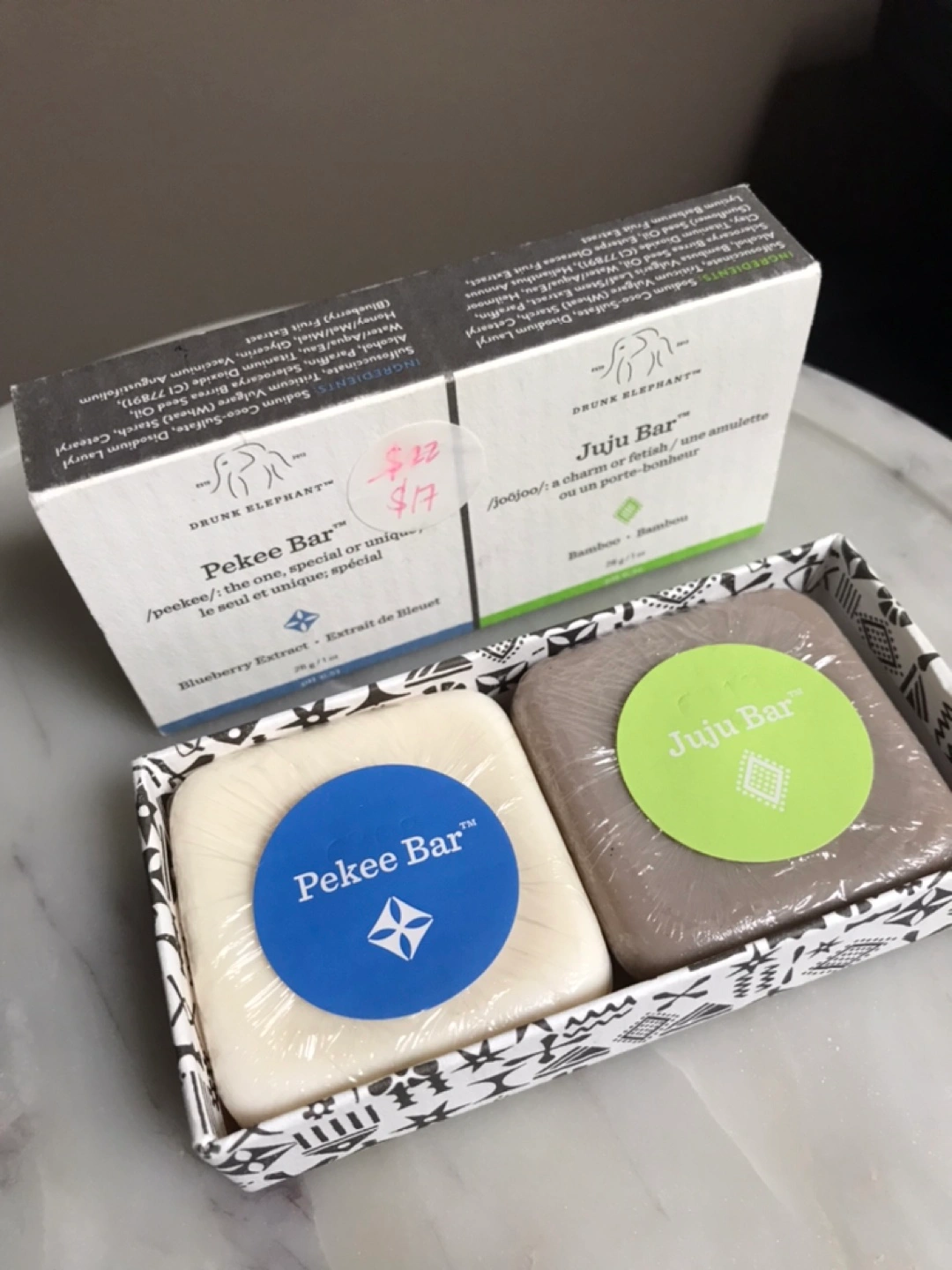Brand new in box. This set includes the Drunk Elephant Pekee Bar and Juju Bar. Each bar is 28 g / 1 oz.