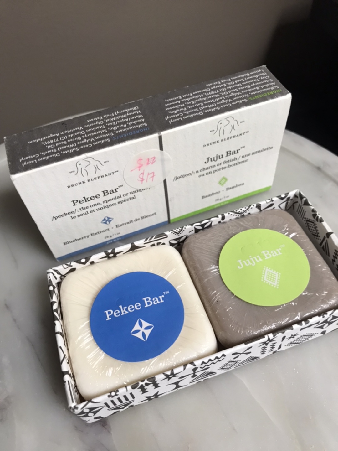 Brand new in box. This set includes the Drunk Elephant Pekee Bar and Juju Bar. Each bar is 28 g / 1 oz.