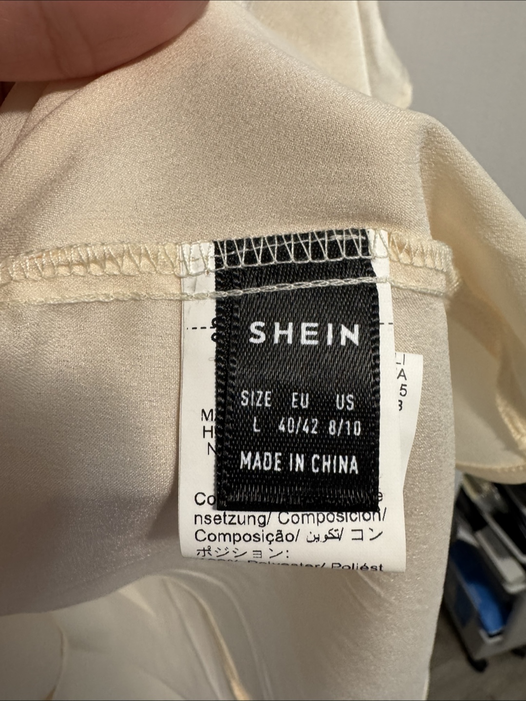 Cream-coloured Satin Mock Neck Blouse - Size L