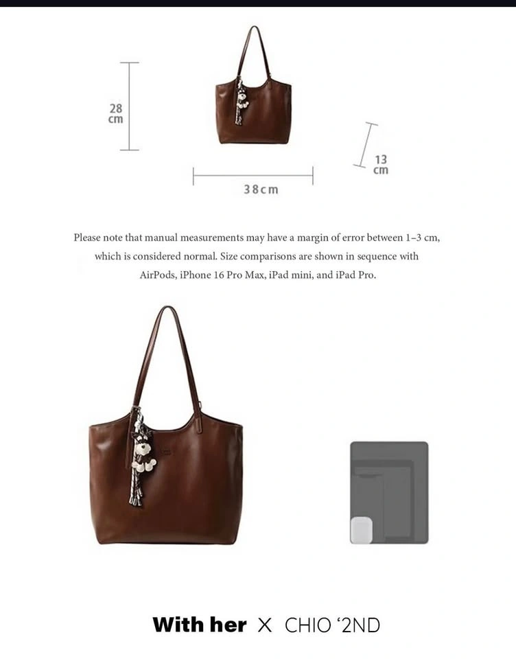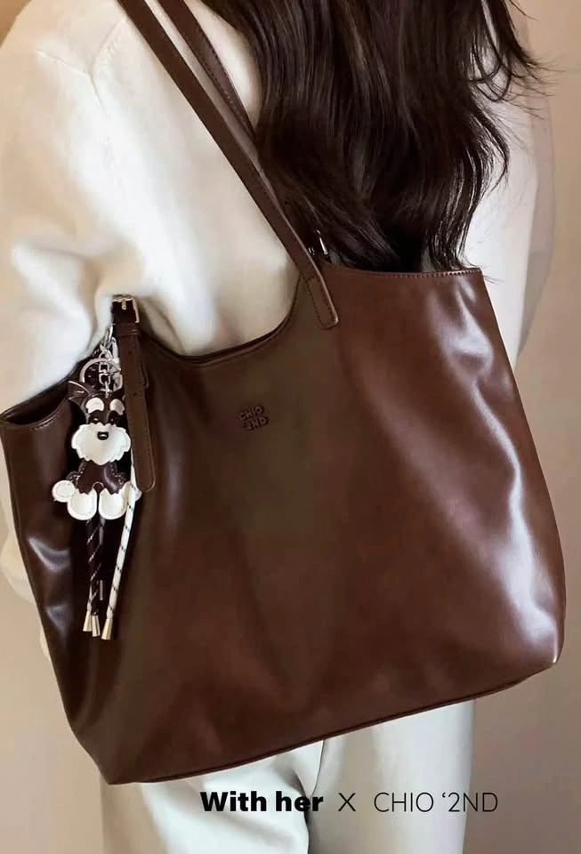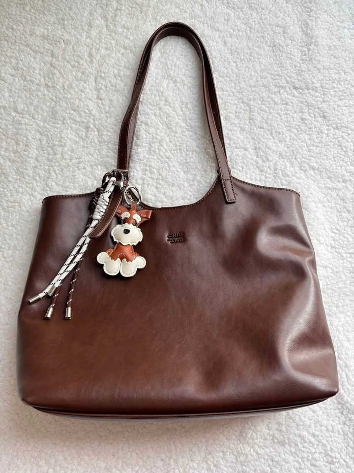 This rich brown leather tote blends timeless elegance with a hint of playfulness, thanks to its soft silhouette and signature fluffy charm. A perfect everyday companion! In EUC! 38x28x13cm.