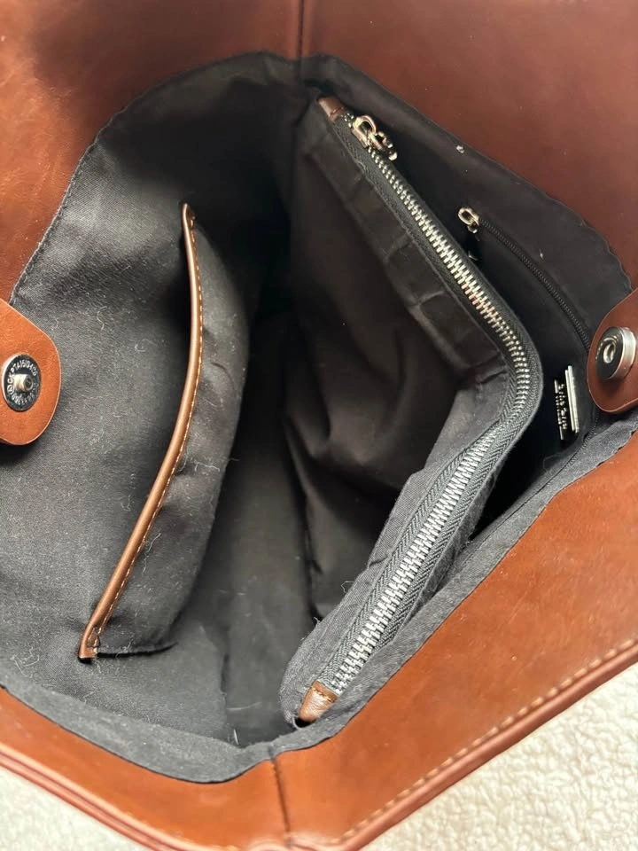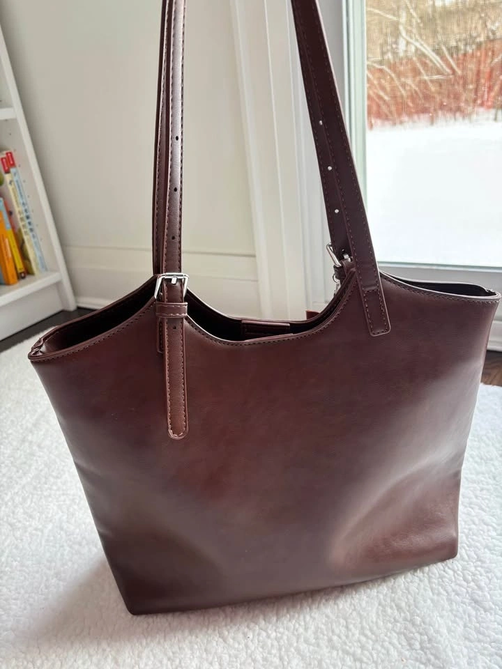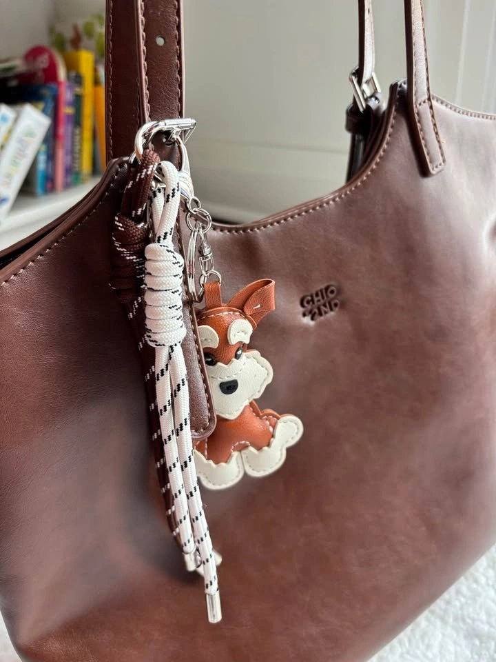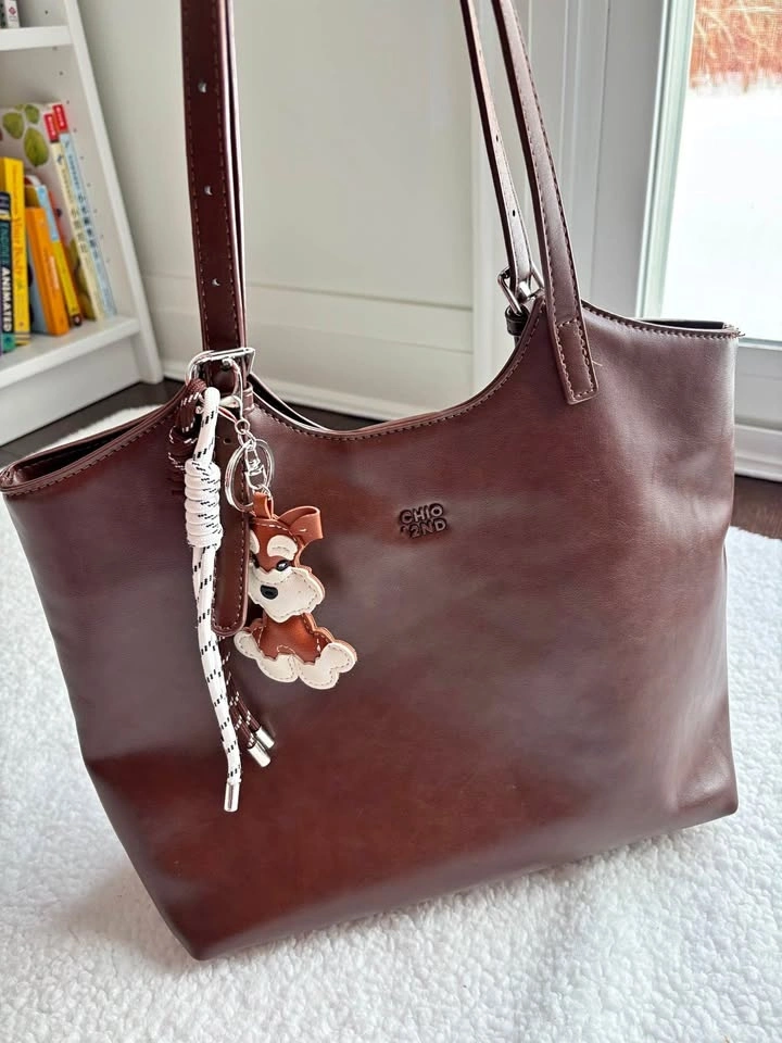 This rich brown leather tote blends timeless elegance with a hint of playfulness, thanks to its soft silhouette and signature fluffy charm. A perfect everyday companion! In EUC! 38x28x13cm.