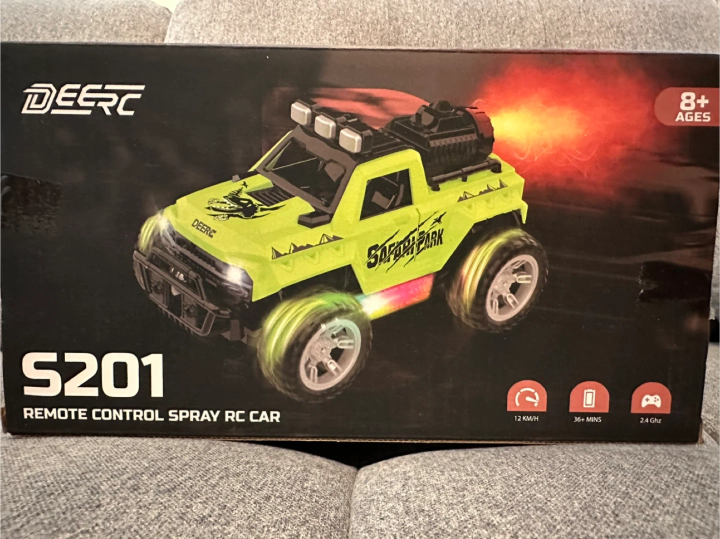 Selling a brand new DEERC S201 Remote Control Spray RC Car! It's still in its original box and ready for some fun. Features include:
