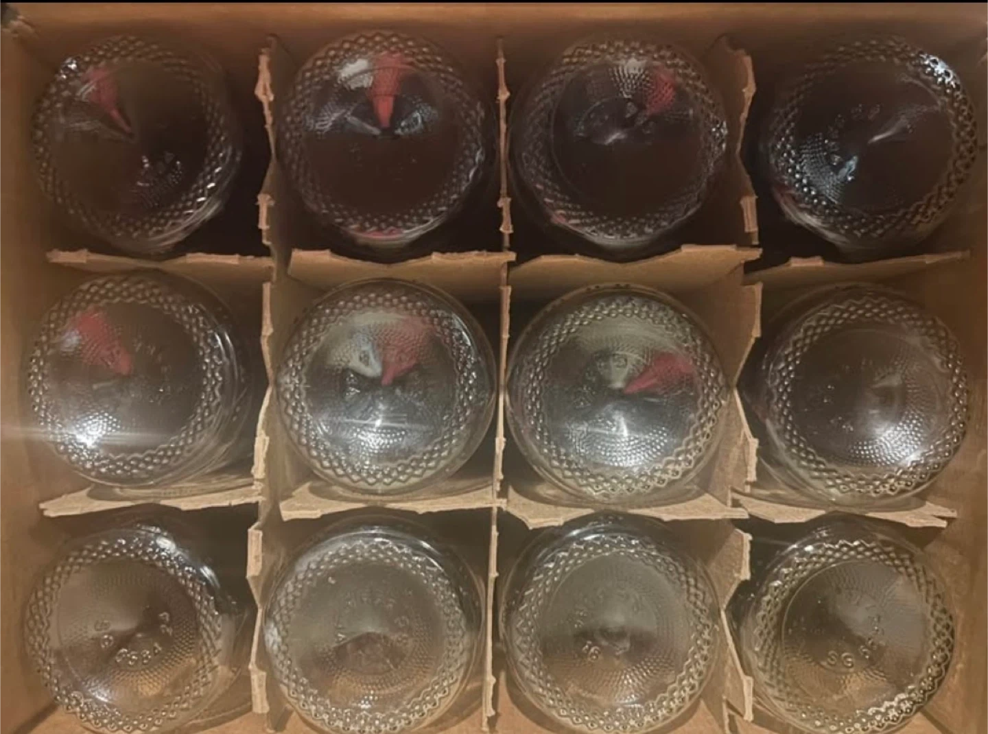 Hi there I have in boxes that were cleaned and sanitized before storing, no longer need them 30- 750ml clear wine bottles asking 30 for all of them.