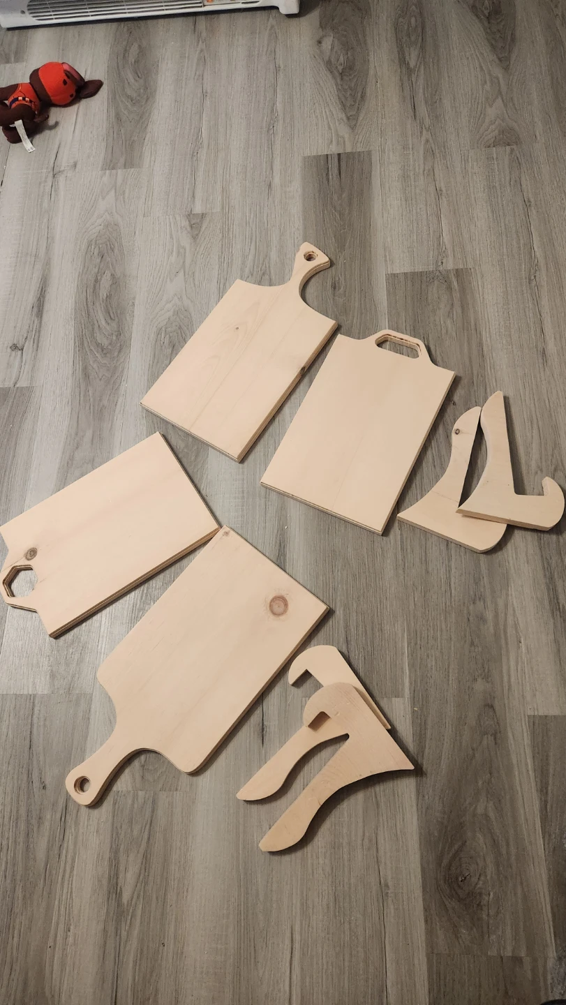 Buy & SellWooden Cutting Board Set with StandsWooden Cutting Board Set with Stands$14Set of 4 unfinished wooden cutting boards. Includes 2 decorative stands. Perfect for crafting or serving. Wood material.ConditionNewWHERE TO MEETCheck LocationView MapSELLERverifiedcornySimcoe600 reviews1 chats·0 favorites·19 viewsSEND CHAT TO SELLERHi corny! I’m interested in your listing.Hi corny! I’m interested in your listing.Get the Karrot app to chatSign In to chat