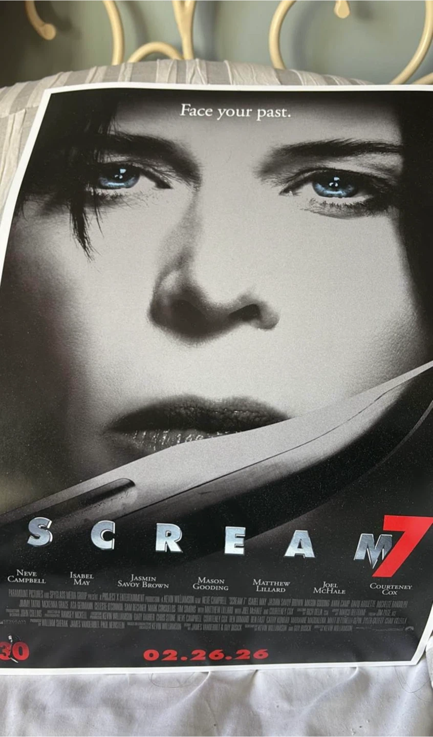 Buy & SellScream 7 Movie PosterScream 7 Movie Poster$5This is a movie poster for Scream 7. The release date is 02.26.26. It features Neve Campbell and other cast members.WHERE TO MEETCheck LocationView MapSELLERverifiedMegan PottsWestney And Kingston740 reviews0 chats·0 favorites·2 viewsSEND CHAT TO SELLERHi Megan Potts! I’m interested in your listing.Hi Megan Potts! I’m interested in your listing.Get the Karrot app to chatSign In to chat
