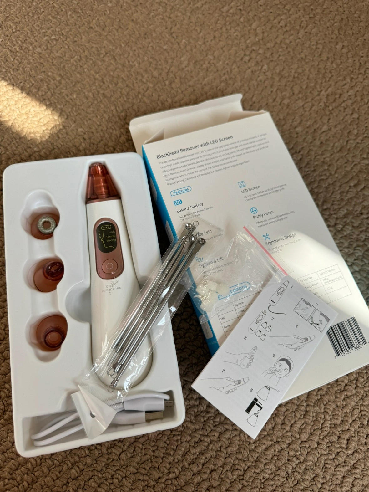 Original product on Amazon: Blackhead Remover Vacuum Pore Cleaner: Black Head Remover Tools - Facial Suction Acne Pimple Comedone Extractor - Skin Care for Face Nose - Electric Rechargeable https://a.co/d/72qEXDR