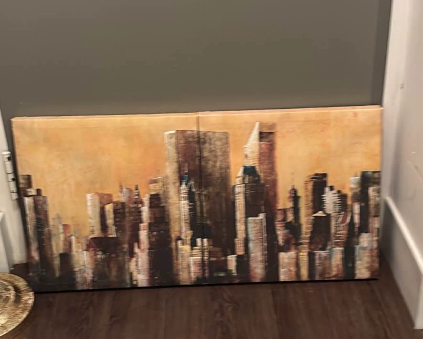 Two canvas wall art pieces, one depicting a cityscape and the other a stormy ocean scene. They're great for adding a touch of art to any room.