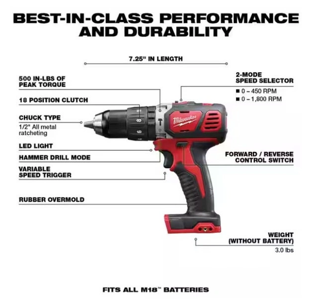 This set combines advanced motor design and ergonomics for professional jobsites and DIY projects. Powered by REDLITHIUM batteries for reliable, long-lasting power. Its compact and lightweight design ensures comfortable use. Built to withstand tough conditions, this durable kit is an essential addition to your toolkit. Includes 1/2" hammer drill/driver and 1/4" hex impact driver. Delivers up to 500 in/lbs of peak torque and 28,800 BPM. Impact driver provides up to 1,500 in/lbs of torque. REDLITHIUM battery technology ensures superior performance. Includes two M18 1.5 AH CP REDLITHIUM batteries and an M18 and M12 Multi-voltage charger. Condition: New. For Sale By: Owner.