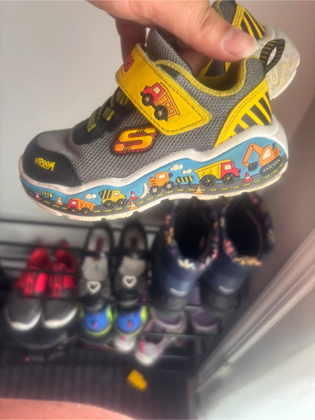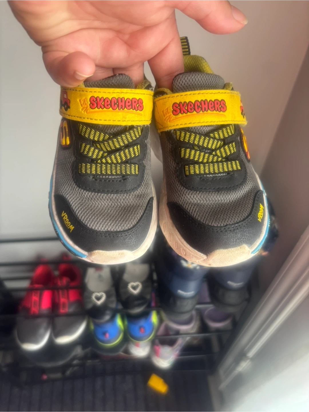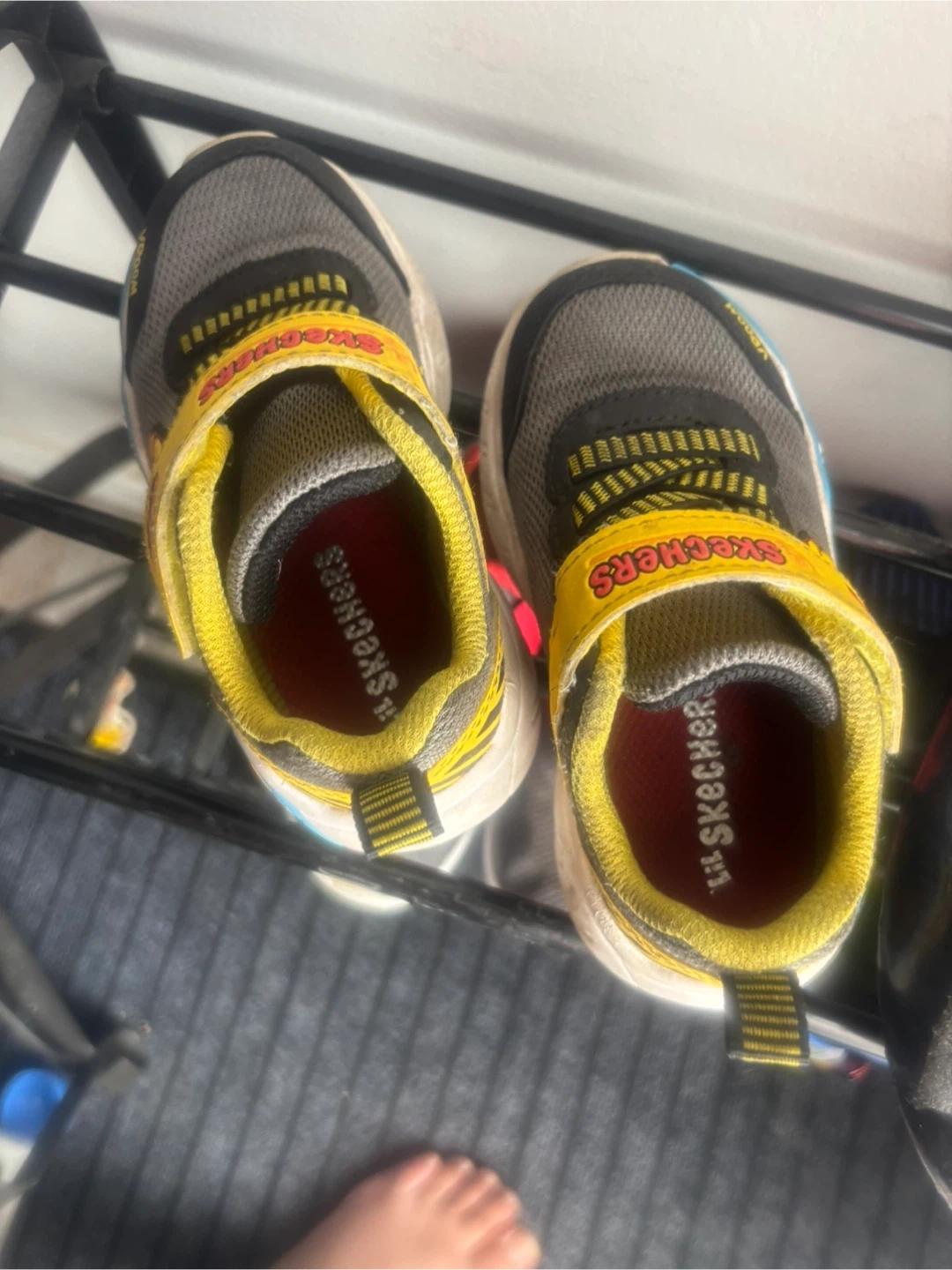 Boys sketchers shoes size 7c. Worn few times no tear jut like newe. In very good condition . My baby just outgruwn. Bought it for 60