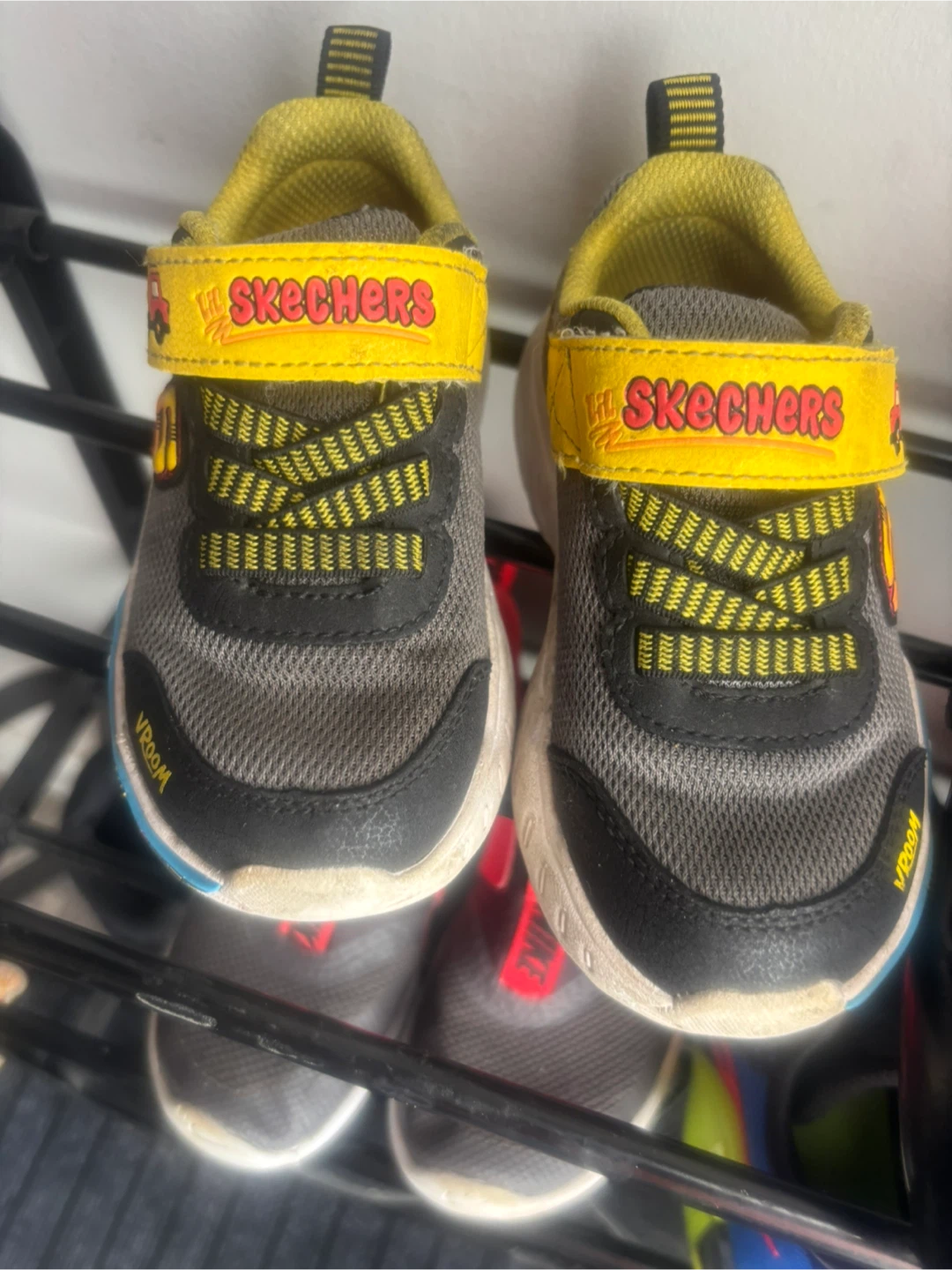 Boys sketchers shoes size 7c. Worn few times no tear jut like newe. In very good condition . My baby just outgruwn. Bought it for 60