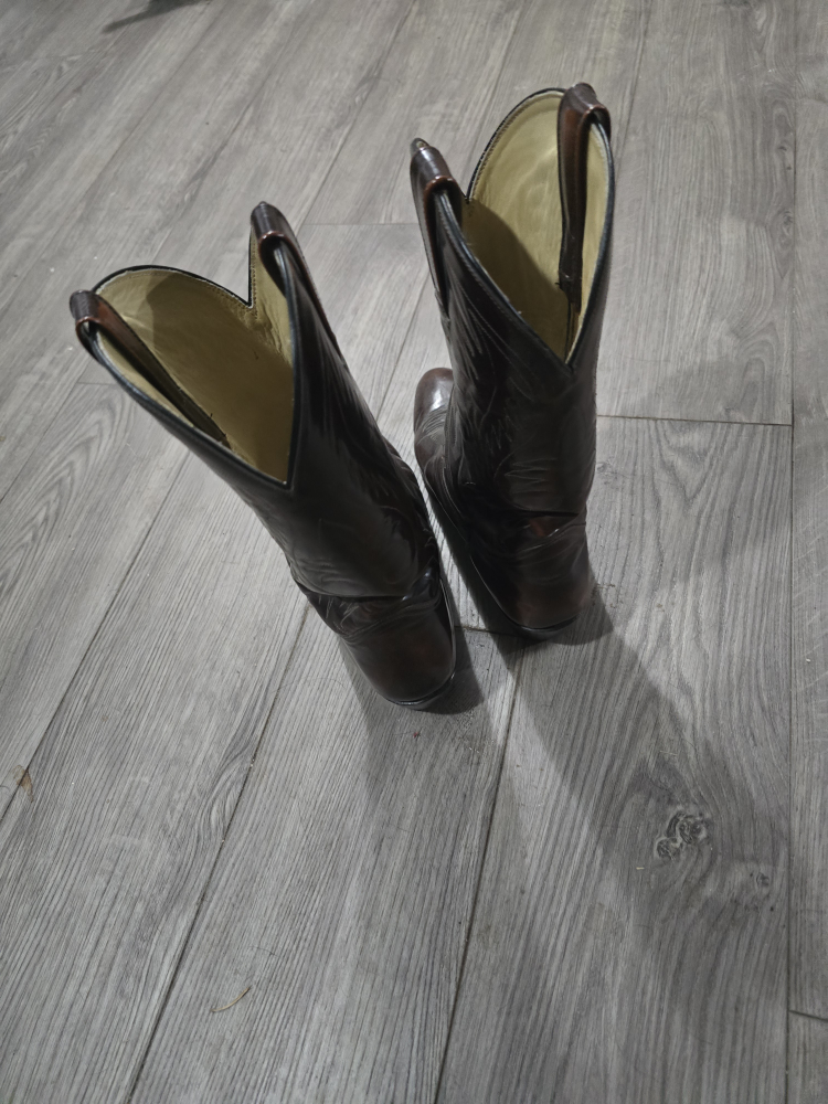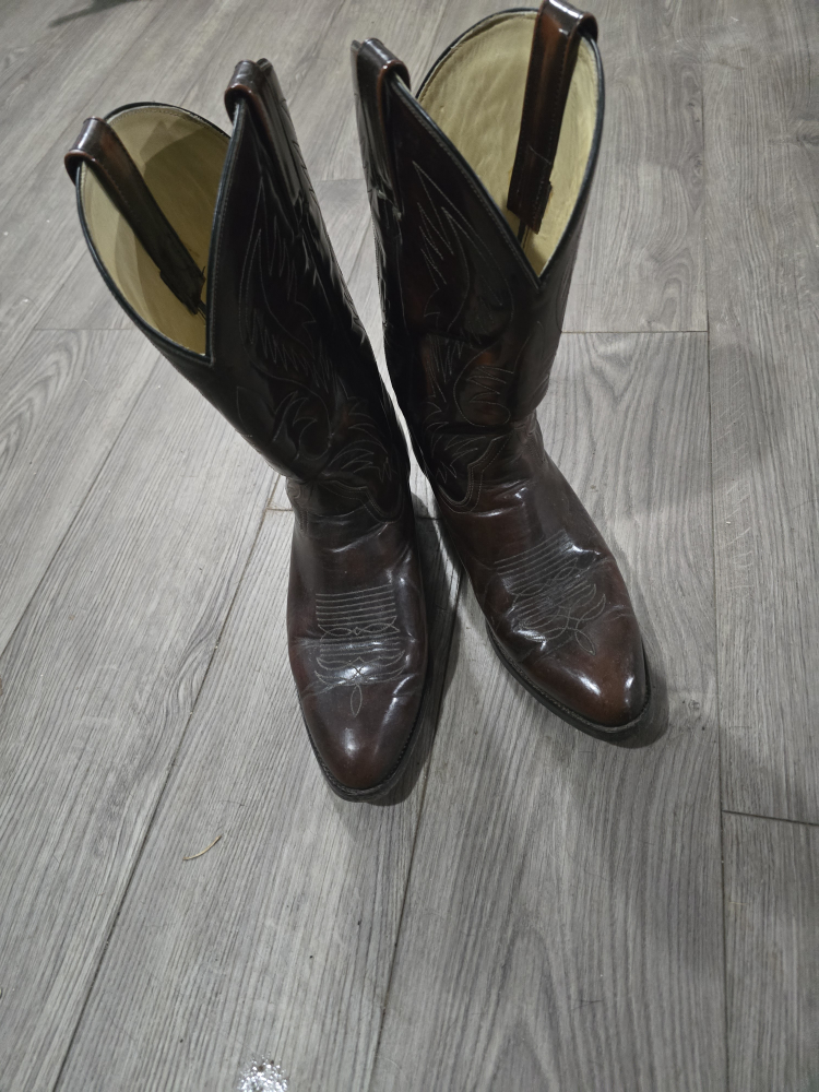 Buy & SellBrown Leather Cowboy BootsBrown Leather Cowboy Boots$75Brown leather cowboy boots with a pointed toe. The boots have a slight heel and are in good condition. ConditionGoodSize10WHERE TO MEETCheck LocationView MapSELLERverifiedmistyWooler600 reviews0 chats·0 favorites·21 viewsSEND CHAT TO SELLERHi misty! I’m interested in your listing.Hi misty! I’m interested in your listing.Get the Karrot app to chatSign In to chat