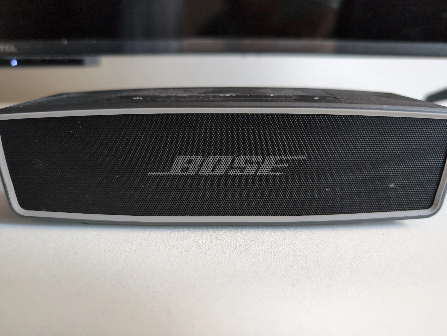 Bose SoundLink Mini portable Bluetooth speaker. It connects wirelessly to your devices. Great for listening to music on the go!