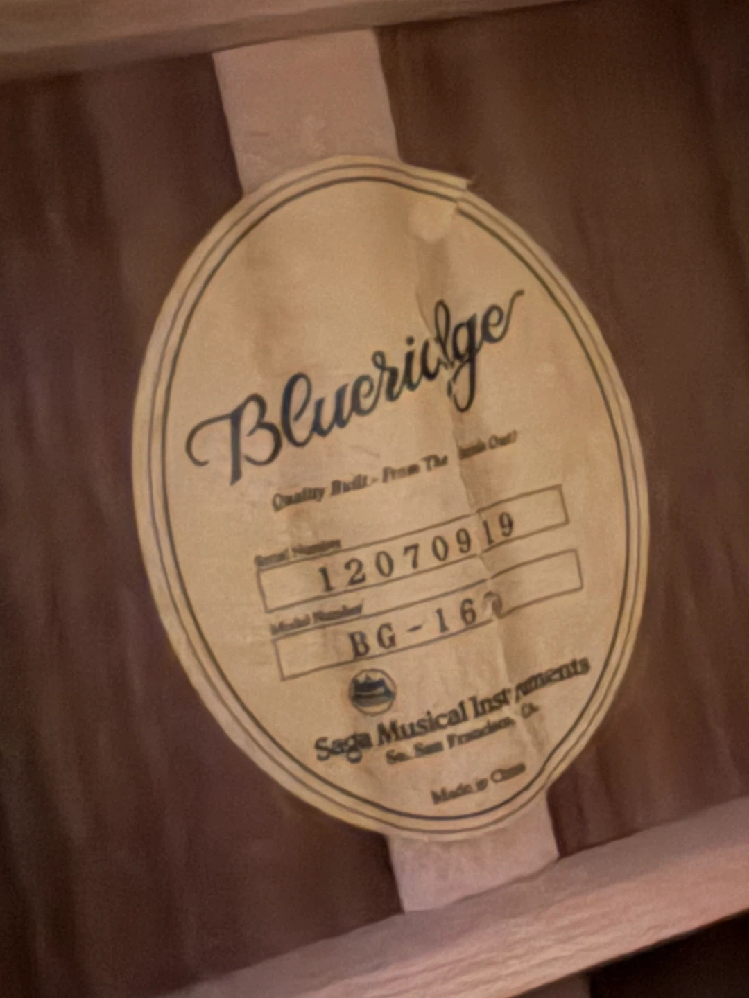 This is a Blueridge BG-167 acoustic guitar. It's in a green lined hardshell case. The guitar has a sunburst finish.