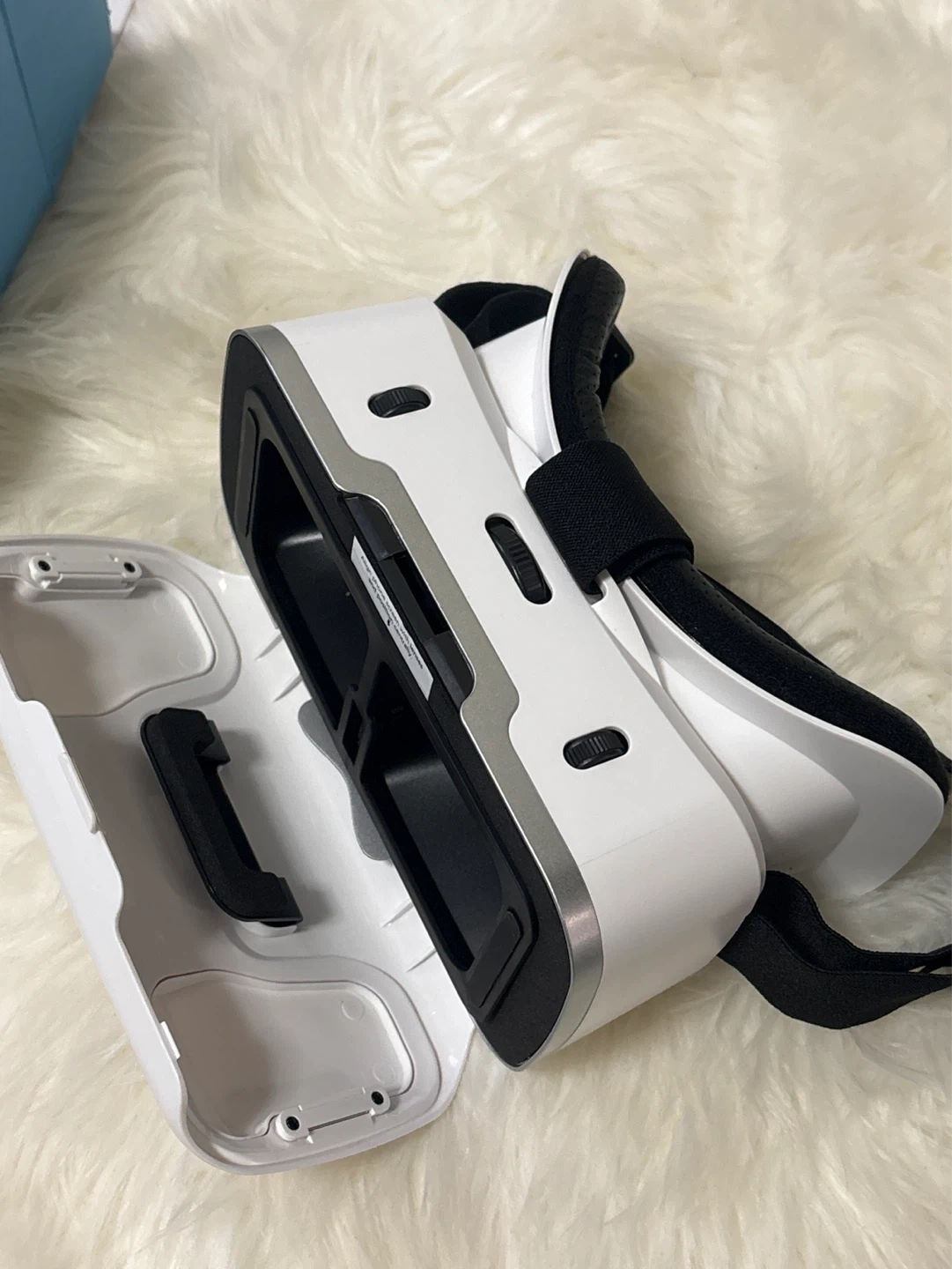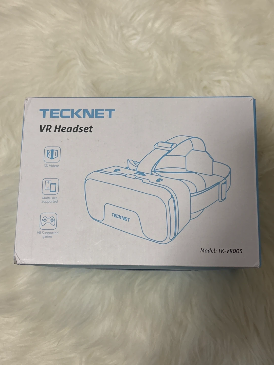 This is a TeckNet VR headset. It supports 3D videos and is used with a phone. It has adjustable straps for comfort.