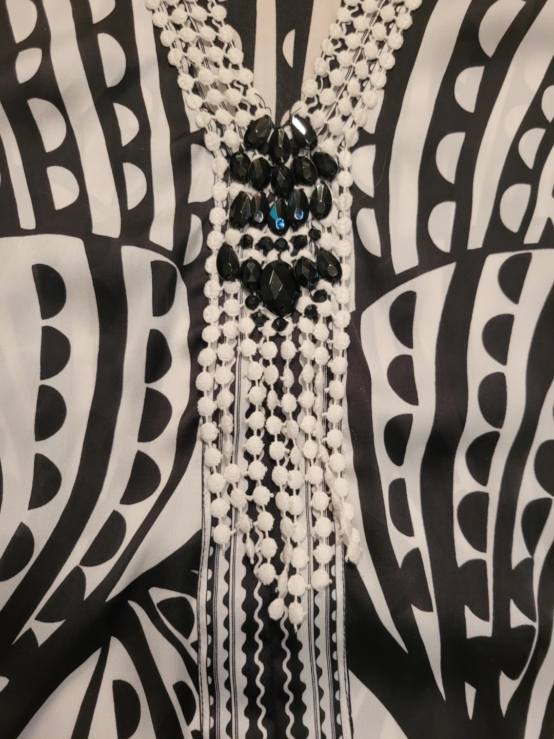 White House Black Market Black & White Beaded Tunic Top