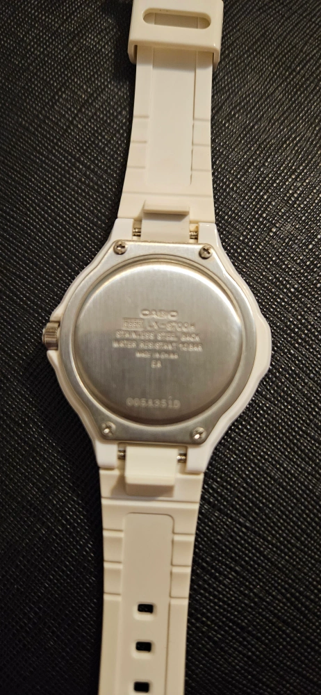 Pre-owned Casio women's watch. White resin band and case. Solar powered. Water resistant. Model number visible on the back. OBO. Shipping can be arranged @ additional cost. Pick Up to be arranged.