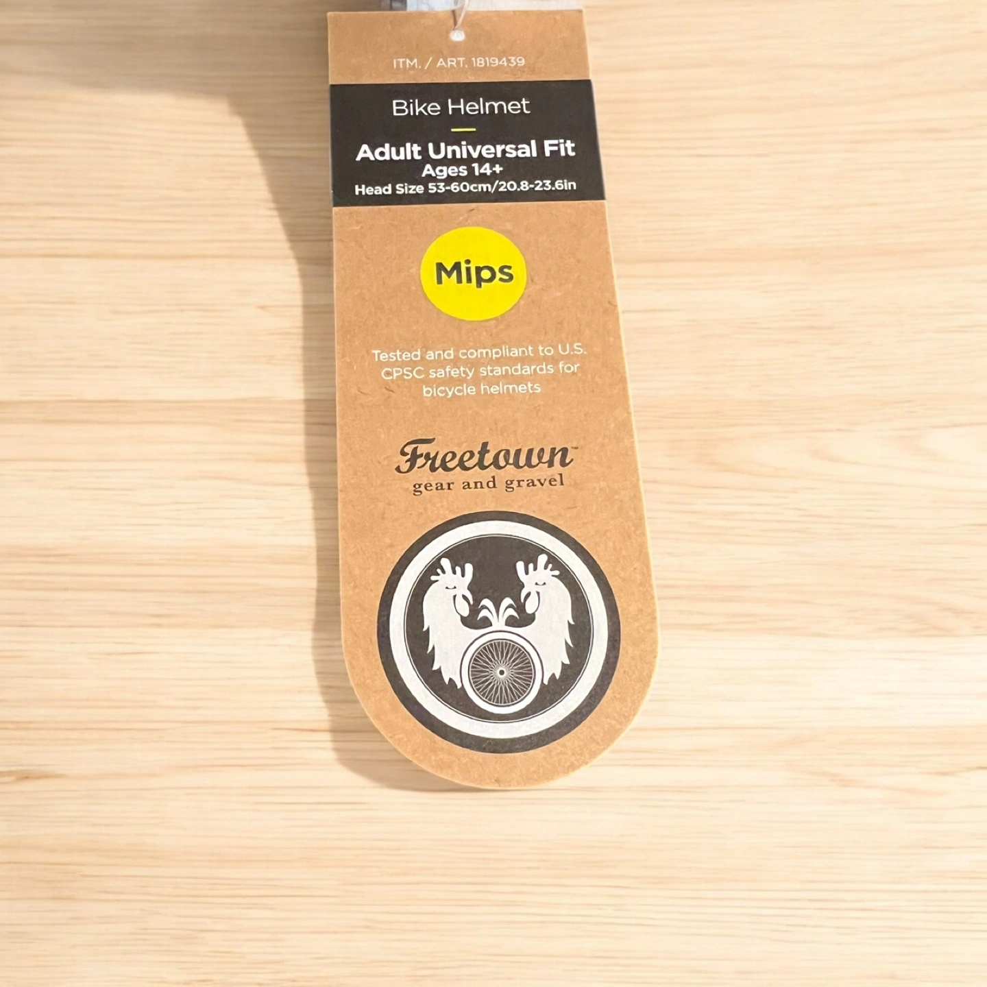 White hybrid cycling helmet. Features MIPS safety system. Durable in-mold construction. Integrated locking port. Adjustable dial fit. Removable visor. Suitable for road, mountain, and urban cycling.