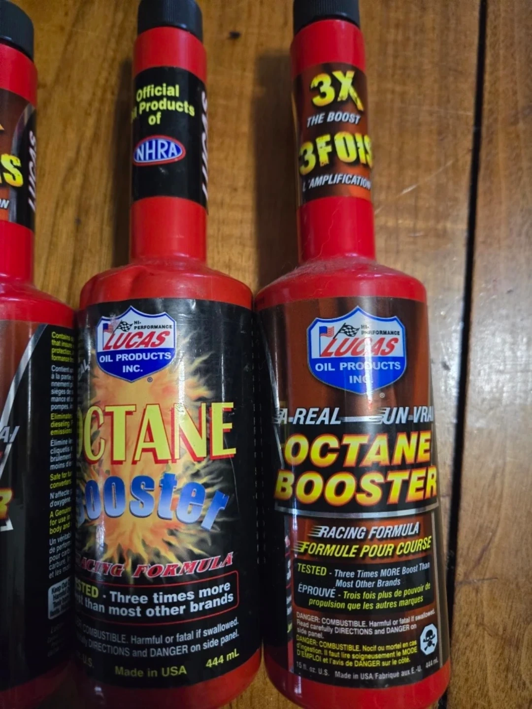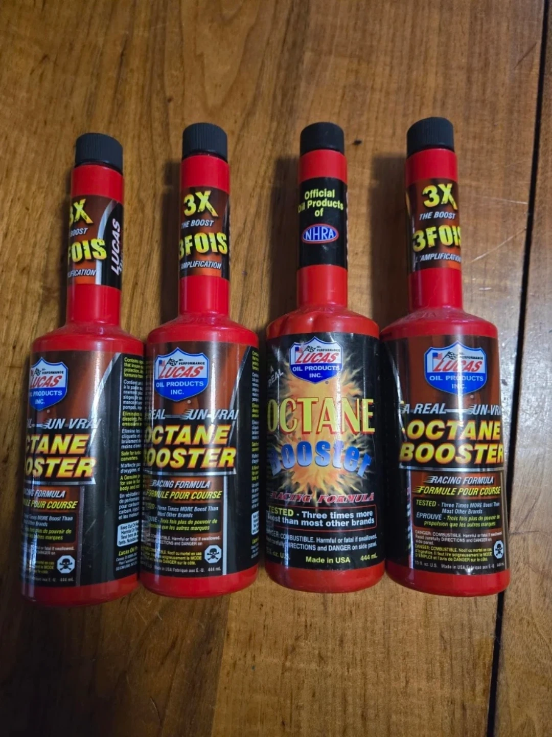 Selling four bottles of Lucas Octane Booster. Each bottle contains 444 mL of the racing formula designed to boost performance. It's tested to perform three times more than other brands. A great way to enhance your engine's performance!