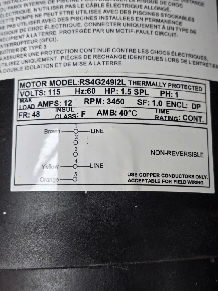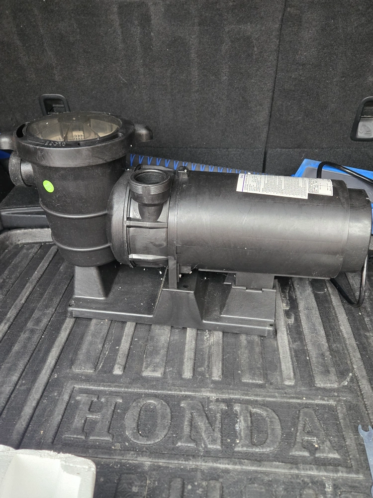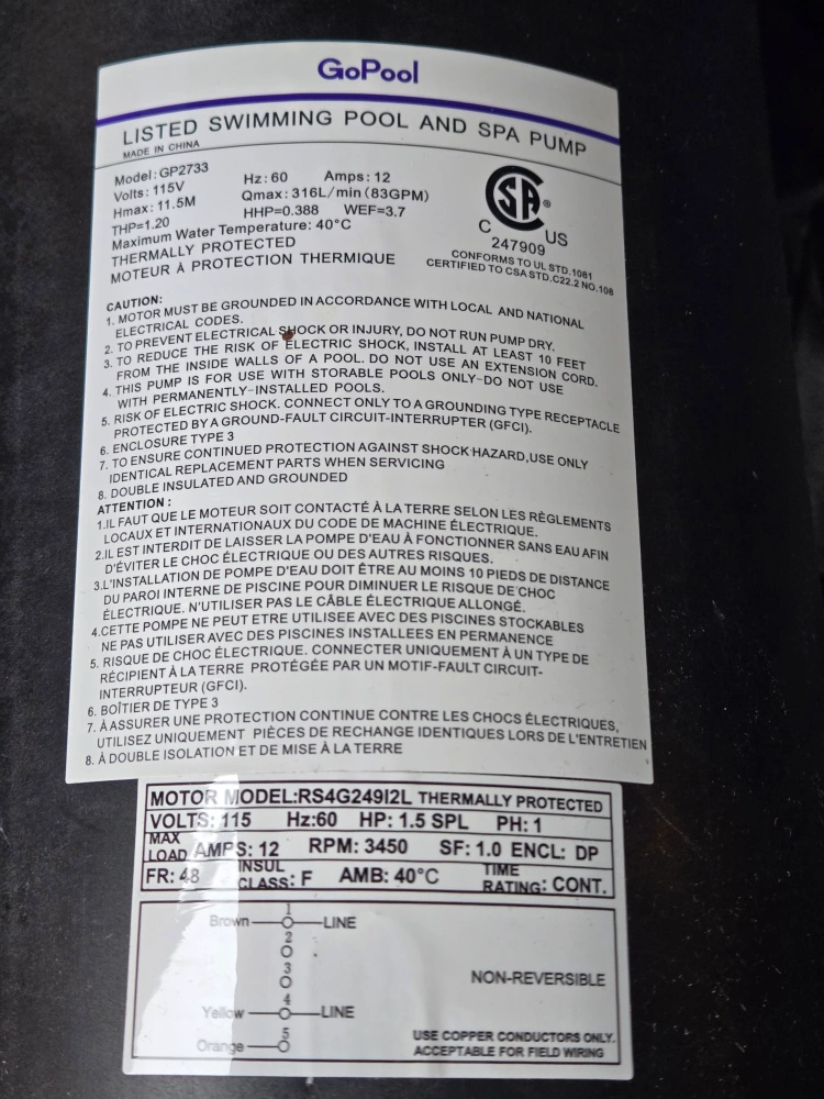 Used GoPool swimming pool pump. Model RS4624912L. 1.5 HP. Thermally protected. Includes strainer basket. 115 Volts. 12 Amps.