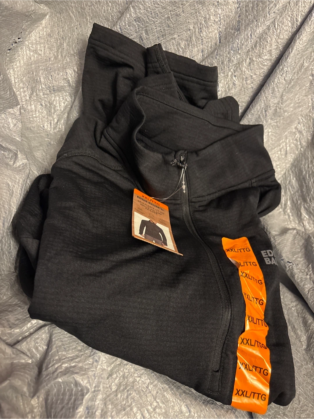 Eddie Bauer Grid Fleece 1/2-Zip shirt in black. It's a size XXL/TTG. Breathable and stretch fabric! Perfect for outdoor activities or casual wear.