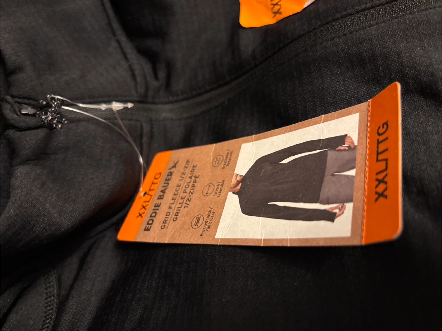 Eddie Bauer Grid Fleece 1/2-Zip shirt in black. It's a size XXL/TTG. Breathable and stretch fabric! Perfect for outdoor activities or casual wear.