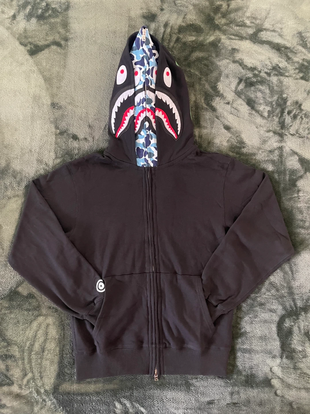 Selling a BAPE (A Bathing Ape) Shark Full Zip Hoodie in black, size medium! This hoodie features the iconic shark design Brand new Comes with the original packaging!