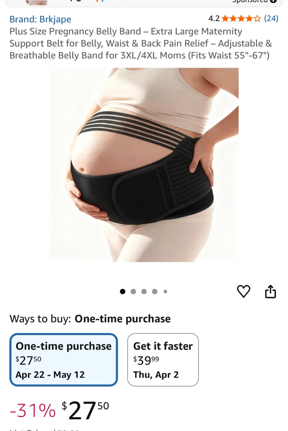 This is a black, extra-large maternity belly band designed for support. It's adjustable and breathable, fitting waists from 55" to 67". This band helps with belly, waist, and back pain relief during pregnancy.