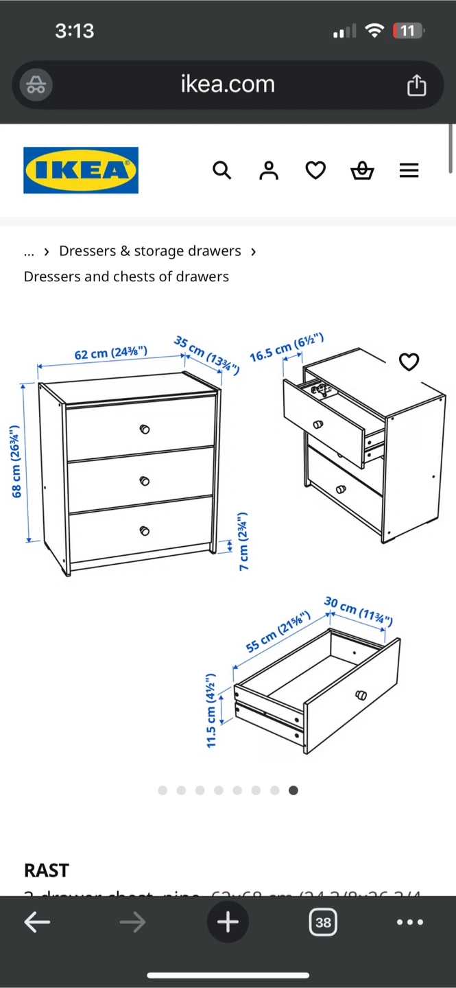 Selling an IKEA Rast 3-drawer chest made of pine. The dimensions are 62x68 cm (24 3/8x26 3/4 "). It's a simple and functional piece that can be easily customized to fit your style. Perfect for adding extra storage to any room!