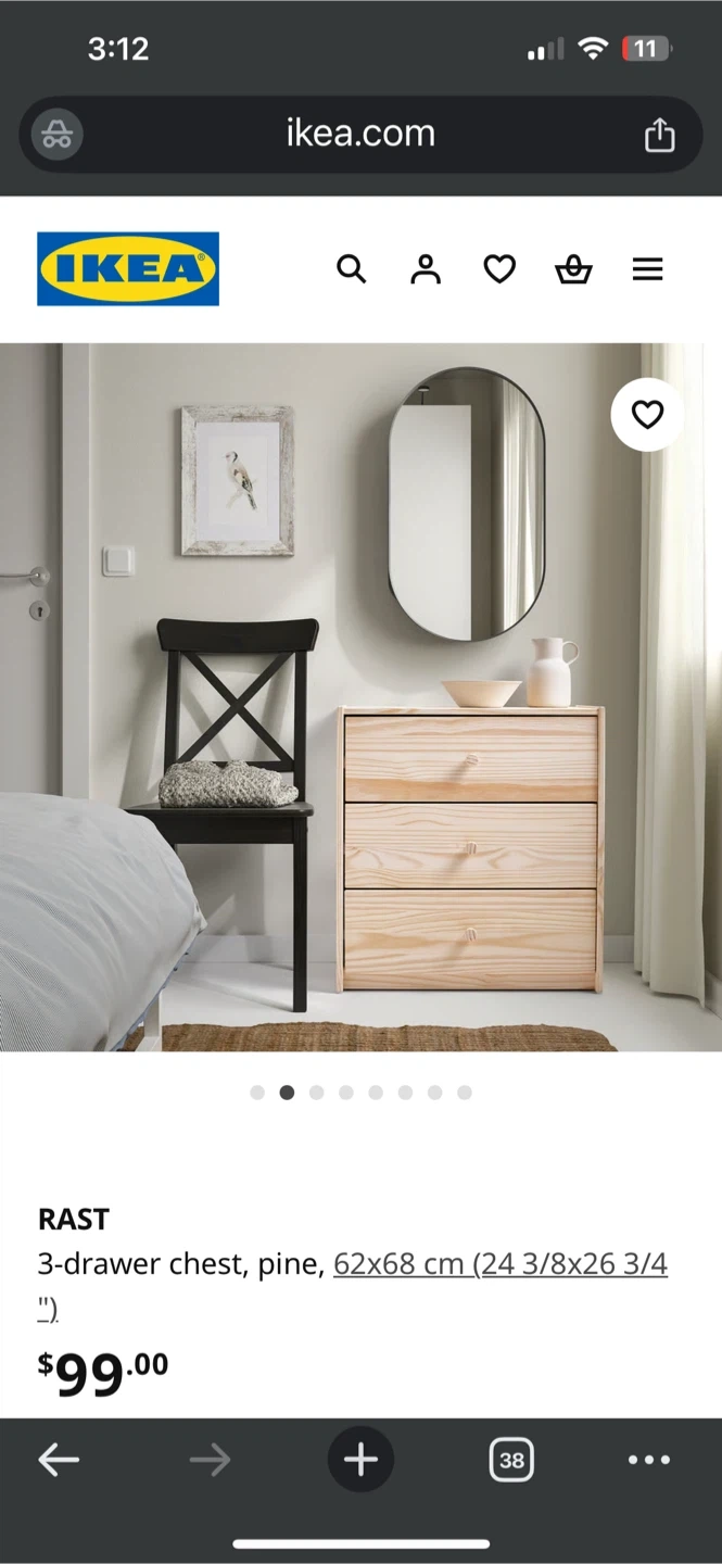 Selling an IKEA Rast 3-drawer chest made of pine. The dimensions are 62x68 cm (24 3/8x26 3/4 "). It's a simple and functional piece that can be easily customized to fit your style. Perfect for adding extra storage to any room!