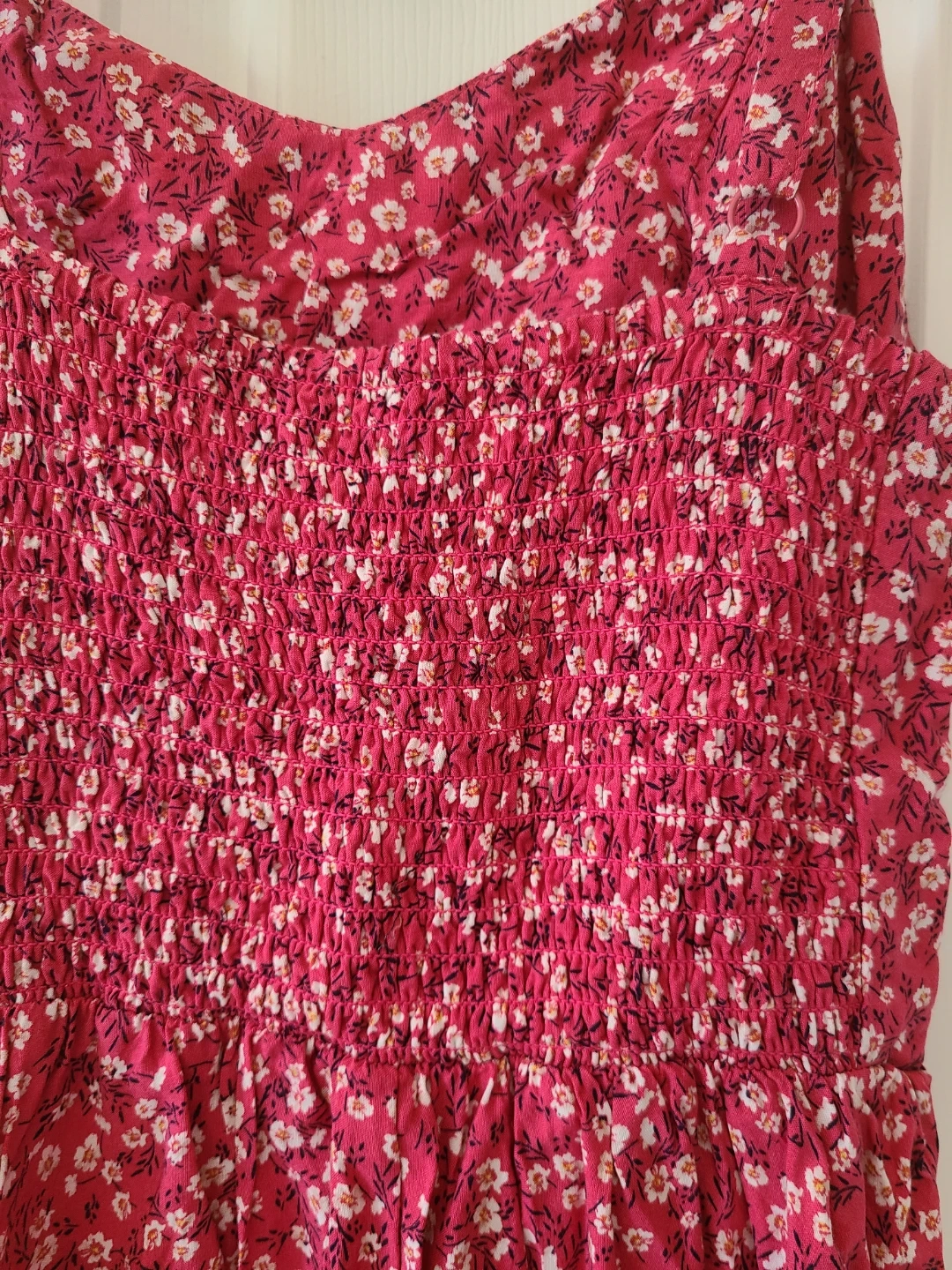 This Old Navy pink cami dress features a delightful floral pattern and a comfortable, smocked bodice, perfect for sunny days or casual outings.