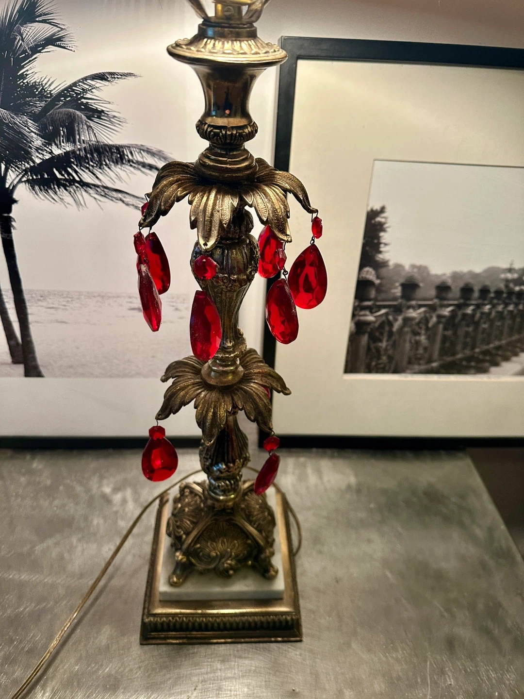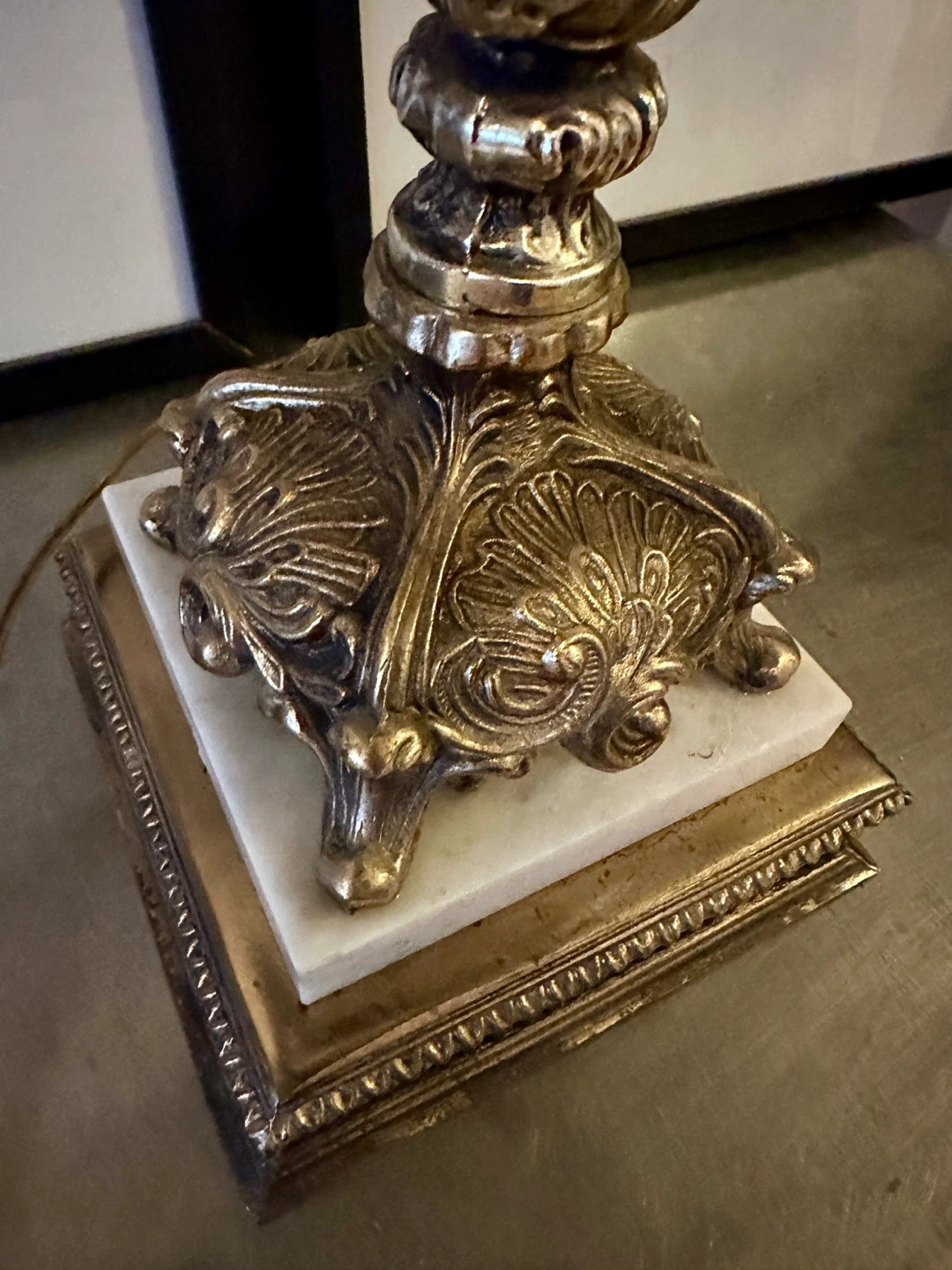 VINTAGE MCM ORNATE PARLOUR TABLE LAMP ANTIQUE BRASS MARBLE LIGHT