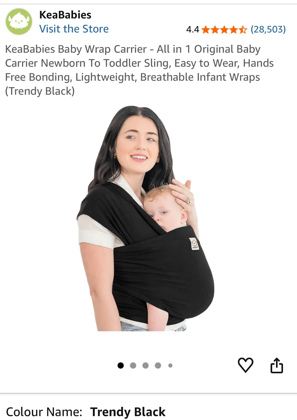 KeaBabies Baby Wrap Carrier - Trendy Black