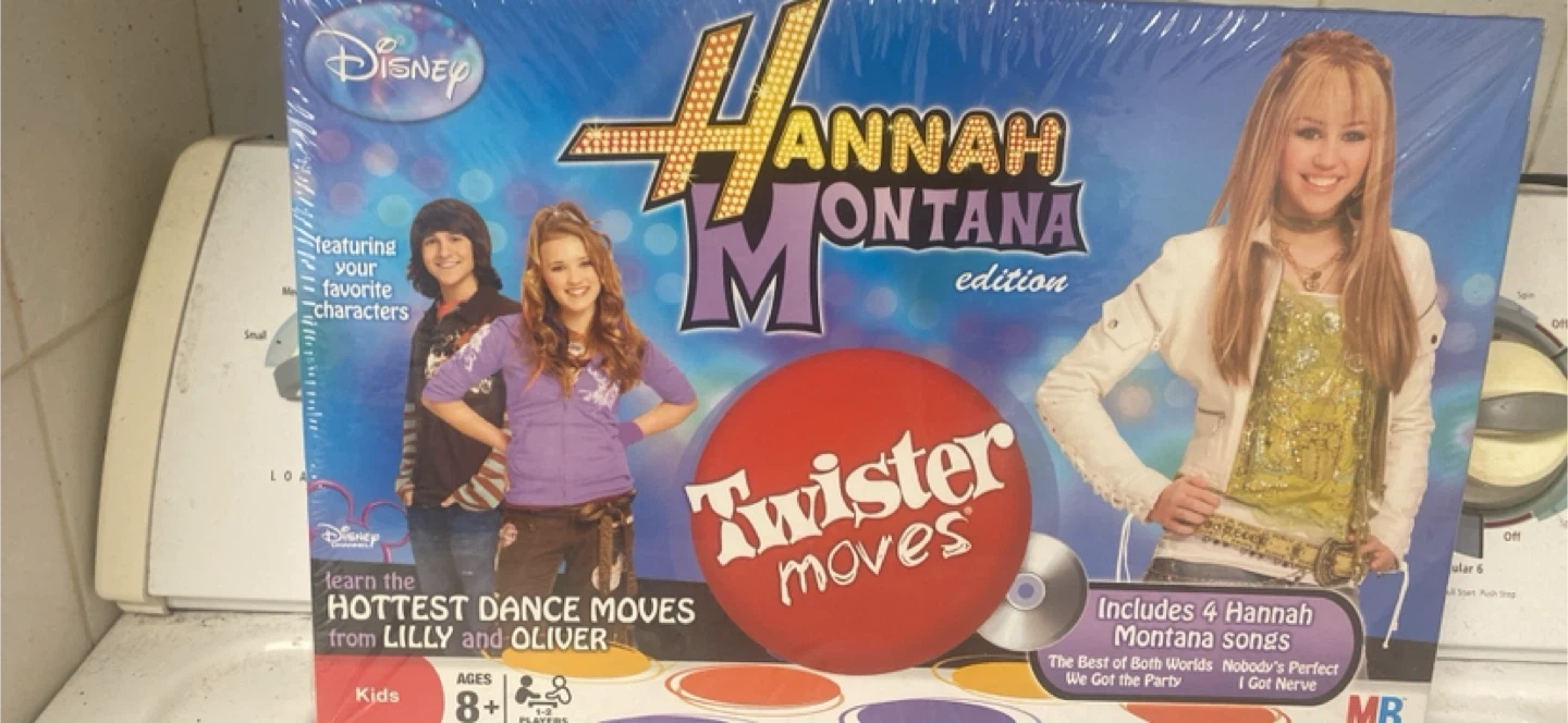 It's a chart-topping party and Twister Moves is putting you in the spotlight! Grab a mat, pop in the Twister Moves CD, and put your feet on the floor prints. Now you're an undercover pop star! Includes 4 Hannah Montana songs.