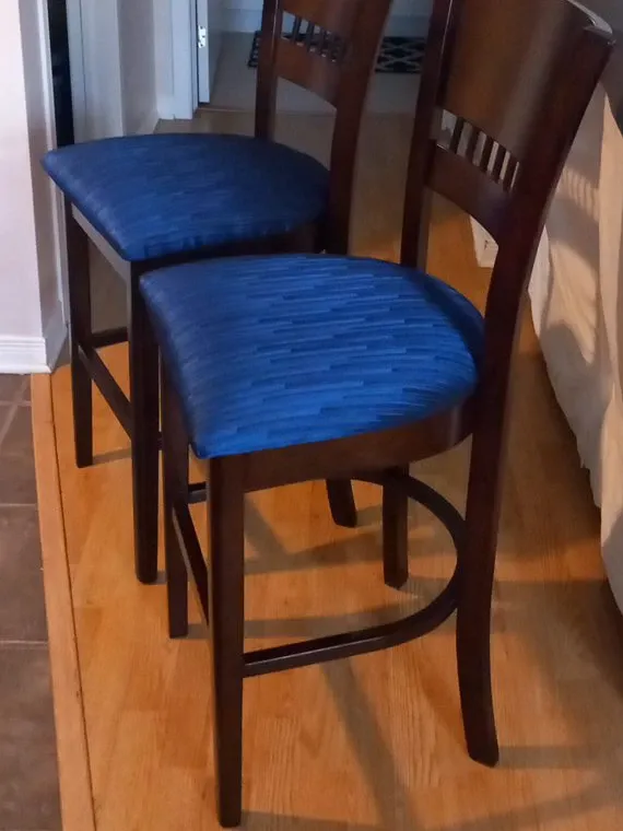 Wooden Bar Stools with Blue Upholstered Seats (Set of 2)