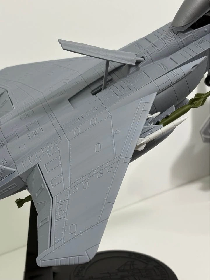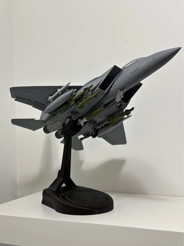 Detailed F-15E Strike Eagle aircraft model, one of the most iconic modern military jets. This piece comes fully assembled with a display stand, ready to be showcased in an office, shelf, gaming room, or aviation collection. High-quality 3D printed model. Printing time: ~70 hours. Total weight: ~280 g. Condition: Brand new. Use: Decorative / Collectible (not a toy). Dimensions: Length: 15.5 inches (39.4 cm), Wingspan: 10.5 inches (26.7 cm), Weight: ~430 g PLA, Scale: 1:40. Pickup location: 30 Shore Breeze Dr (Etobicoke). Feel free to message me if you have any questions!