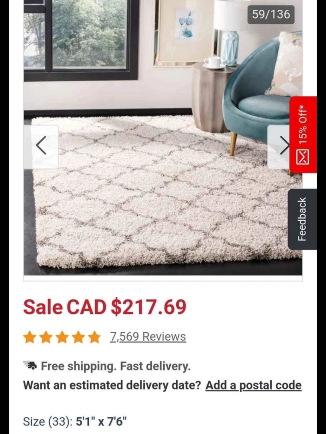 Area Rug 5'1" x 7'6"