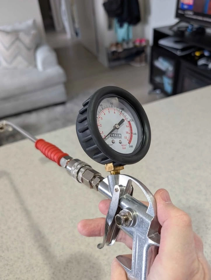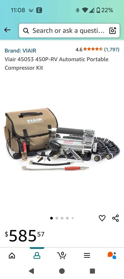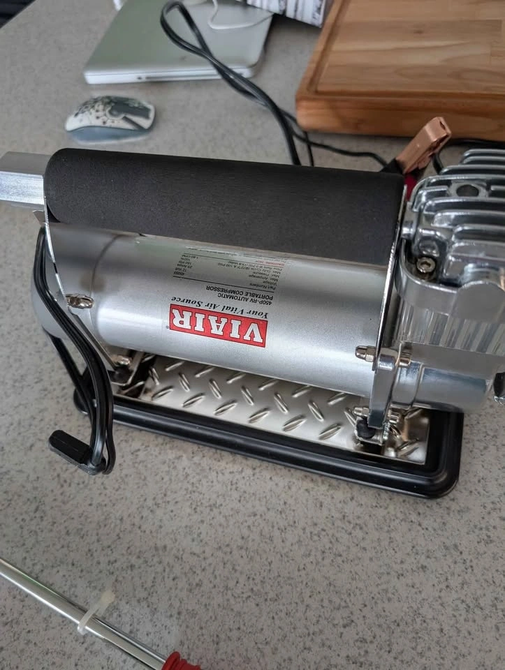 Reason for selling is I have sold my motorhome. Especially great for class A or C, but really good for an dually vehicle. I used it on a 40 ft class A. You really need this if you are driving anything of any size. This 450P-RV Automatic Portable Air Compressor has a long air chuck to reach inside dually. Comes with 2 air hoses, trigger air valve with gauge, and quick connect for ease of use. Price for new from Amazon is $585 + tx. This one is tax free and tariff free!
