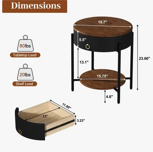 Nice little round side table for sale. Has a drawer for storage and a bottom shelf. Black base with a wood top so it goes with pretty much anything. Great beside a couch or bed. Brand new just unboxed and built to ensure all parts present. Pickup in Winnipeg.