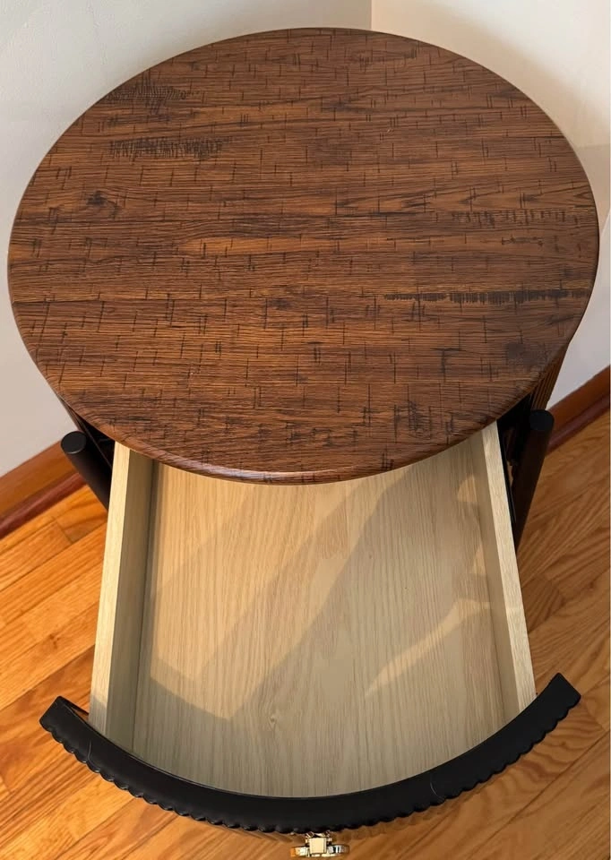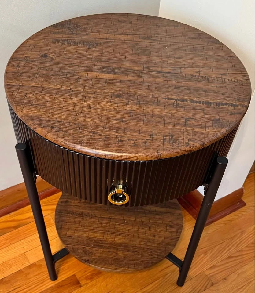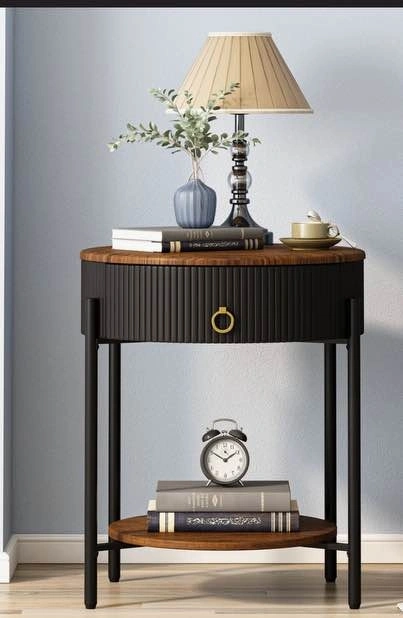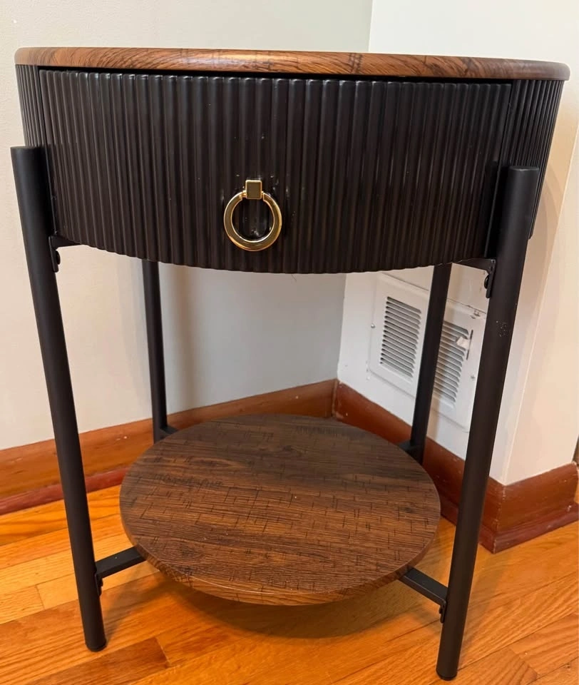 Nice little round side table for sale. Has a drawer for storage and a bottom shelf. Black base with a wood top so it goes with pretty much anything. Great beside a couch or bed. Brand new just unboxed and built to ensure all parts present. Pickup in Winnipeg.