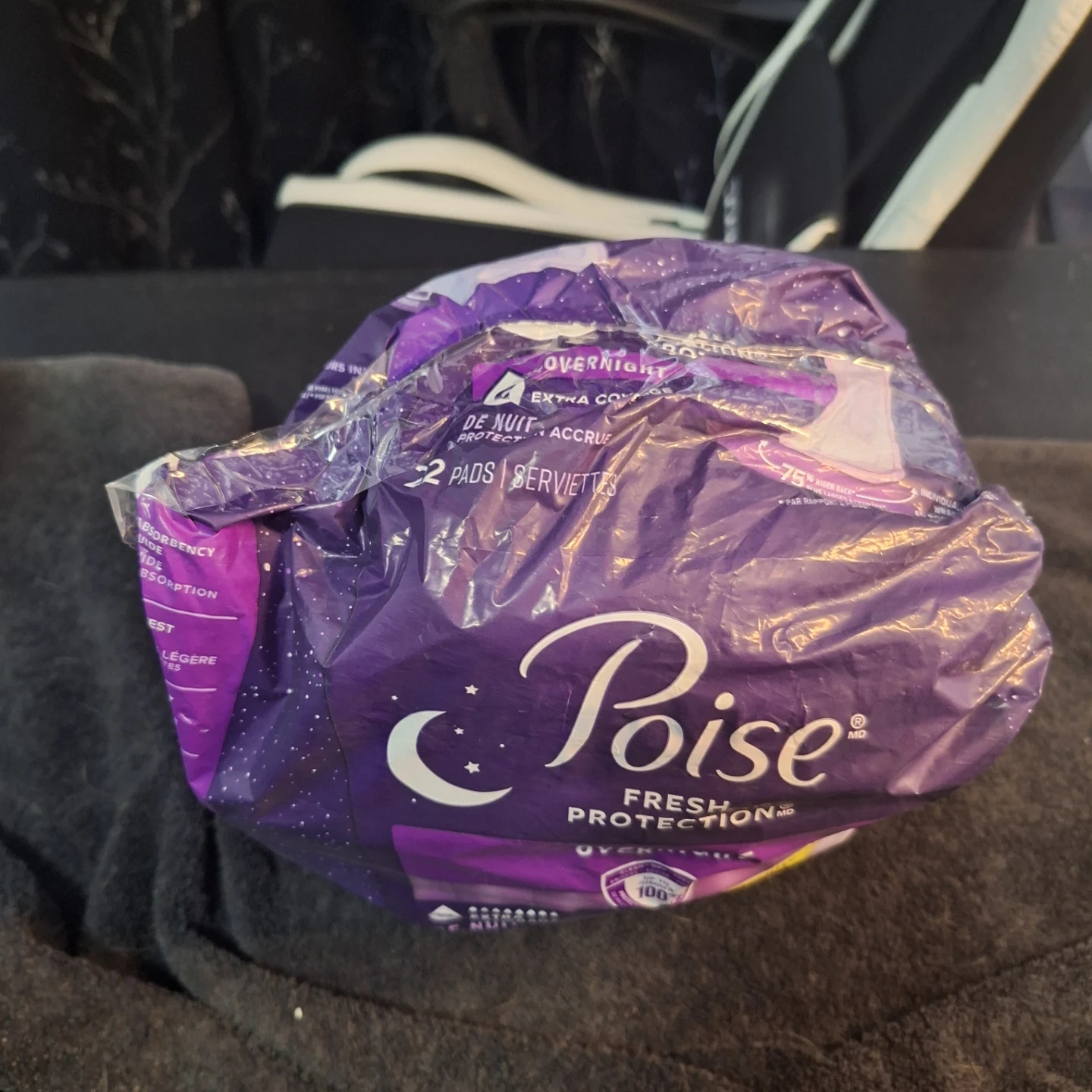 Poise Fresh Protection Overnight Pads offer extra coverage for all-day and all-night protection. This package contains 18 pads.