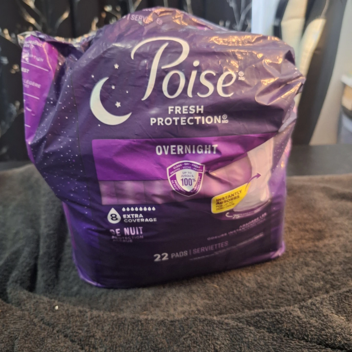 Poise Fresh Protection Overnight Pads offer extra coverage for all-day and all-night protection. This package contains 18 pads.