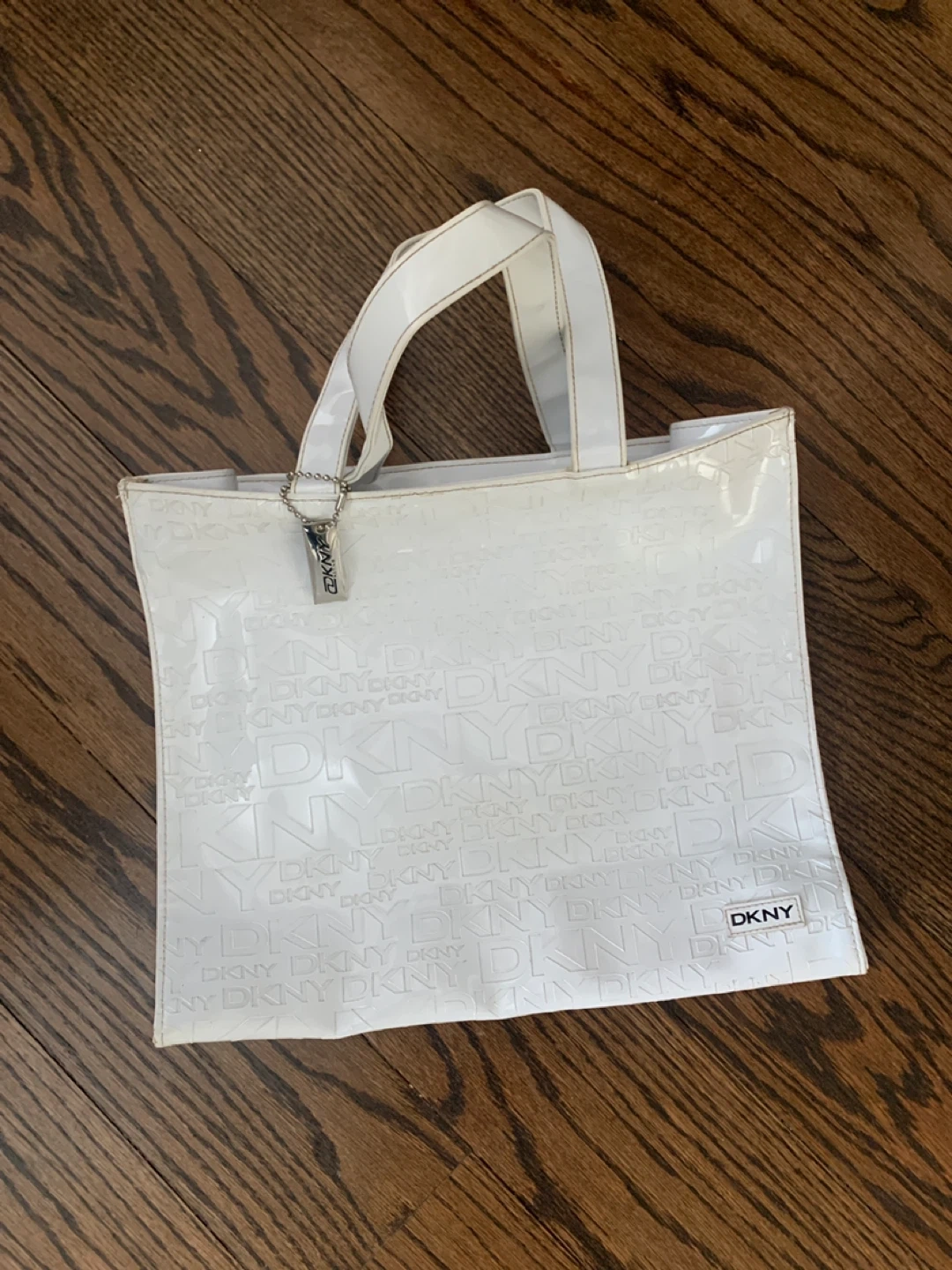 DKNY White Embossed Logo Tote Bag